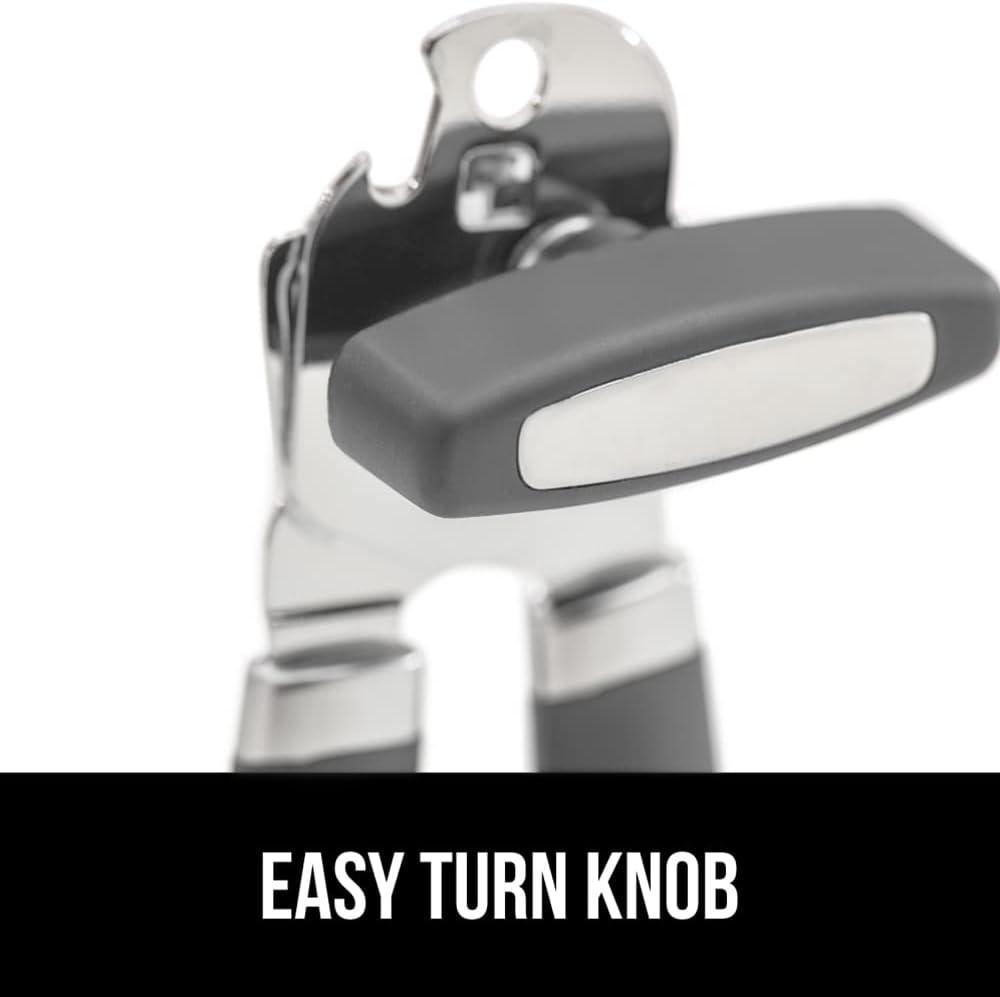 HEAVY DUTY CONSTRUCTION FOR EASIER OPENING: effortless can opening is here; the can opener features an extra large turn knob that allows you to easily open the can with little effort, so you work with the motion instead of against it; also includes stainless steel construction for a seamless cut and oversized handles that make for an easier grip