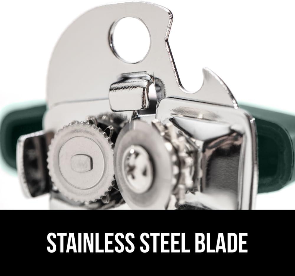 STRONG AND POWERFUL STAINLESS STEEL BLADE: finally, a more powerful can opener; sharp and durable 100 percent stainless steel cutting wheel will easily puncture all types of cans; rust resistant for long lasting use