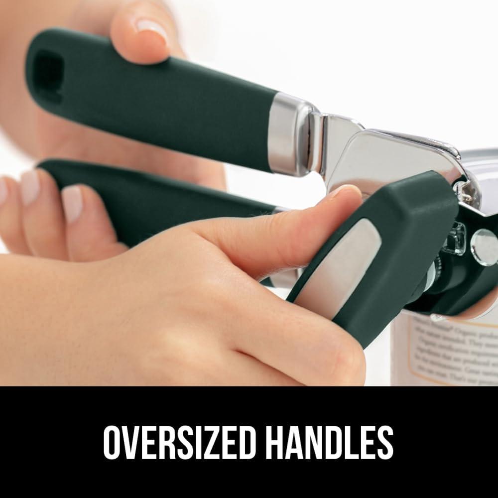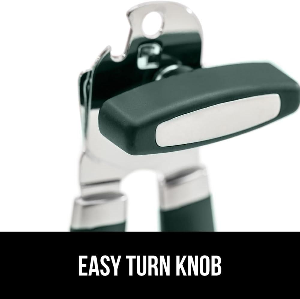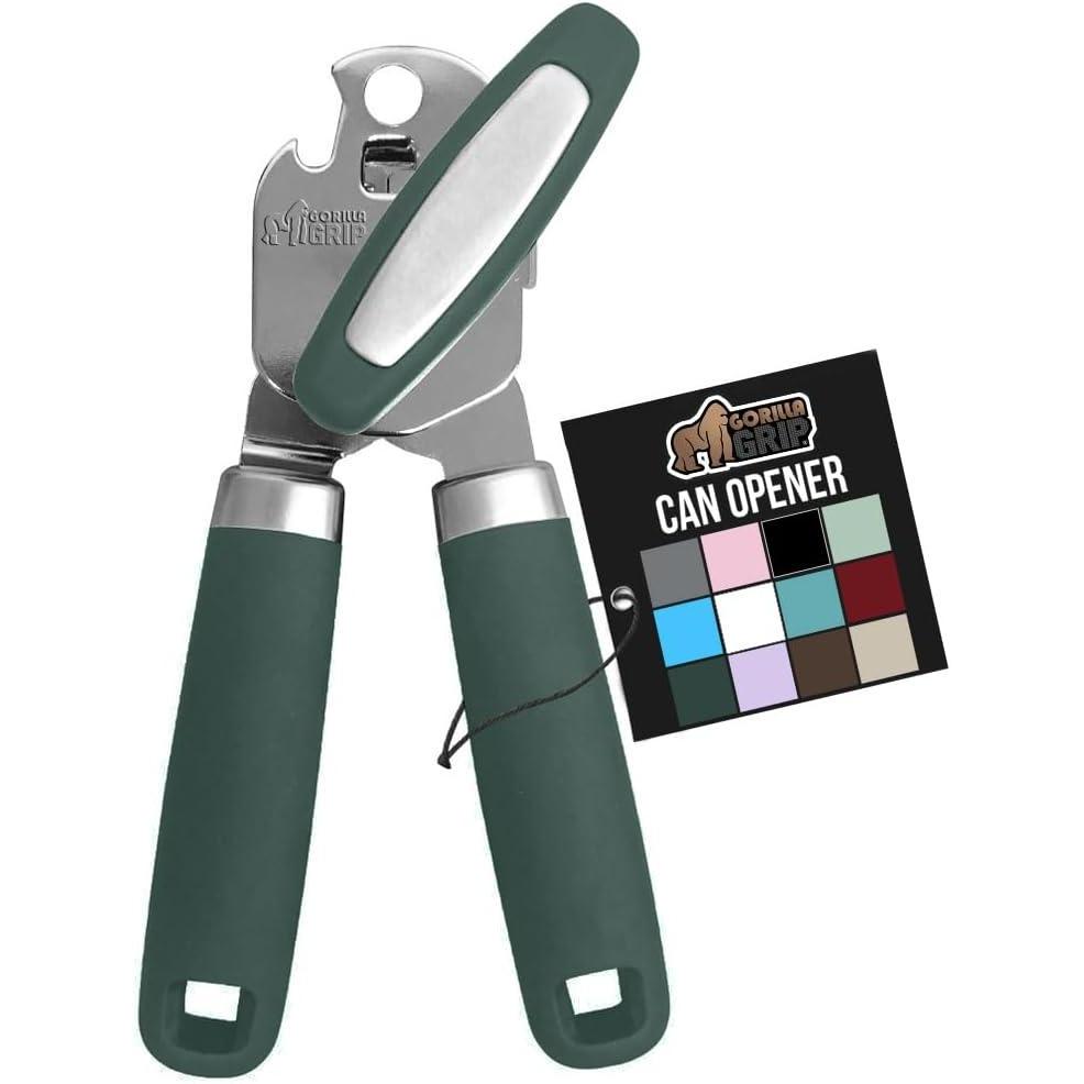 GORILLA GRIP Heavy Duty Stainless Steel Smooth Edge Manual Can Opener and Bottle Openers, Soft Comfortable Handle, Oversized Handheld Turn Knob, US Designed Multifunctional Kitchen Tool, White(Hunter Green)