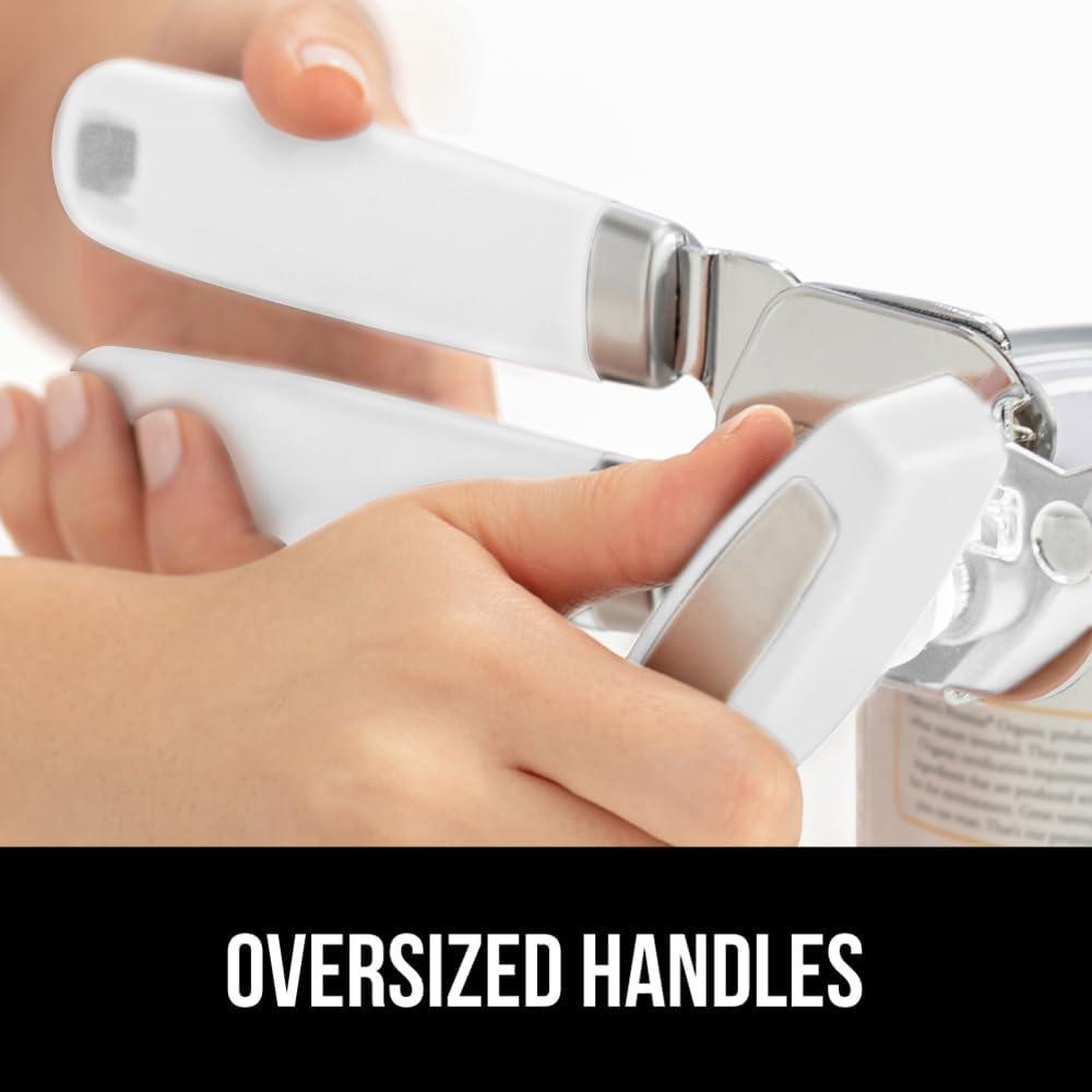 GORILLA GRIP Heavy Duty Stainless Steel Smooth Edge Manual Can Opener and Bottle Openers, Soft Comfortable Handle, Oversized Handheld Turn Knob, US Designed Multifunctional Kitchen Tool, White(White)