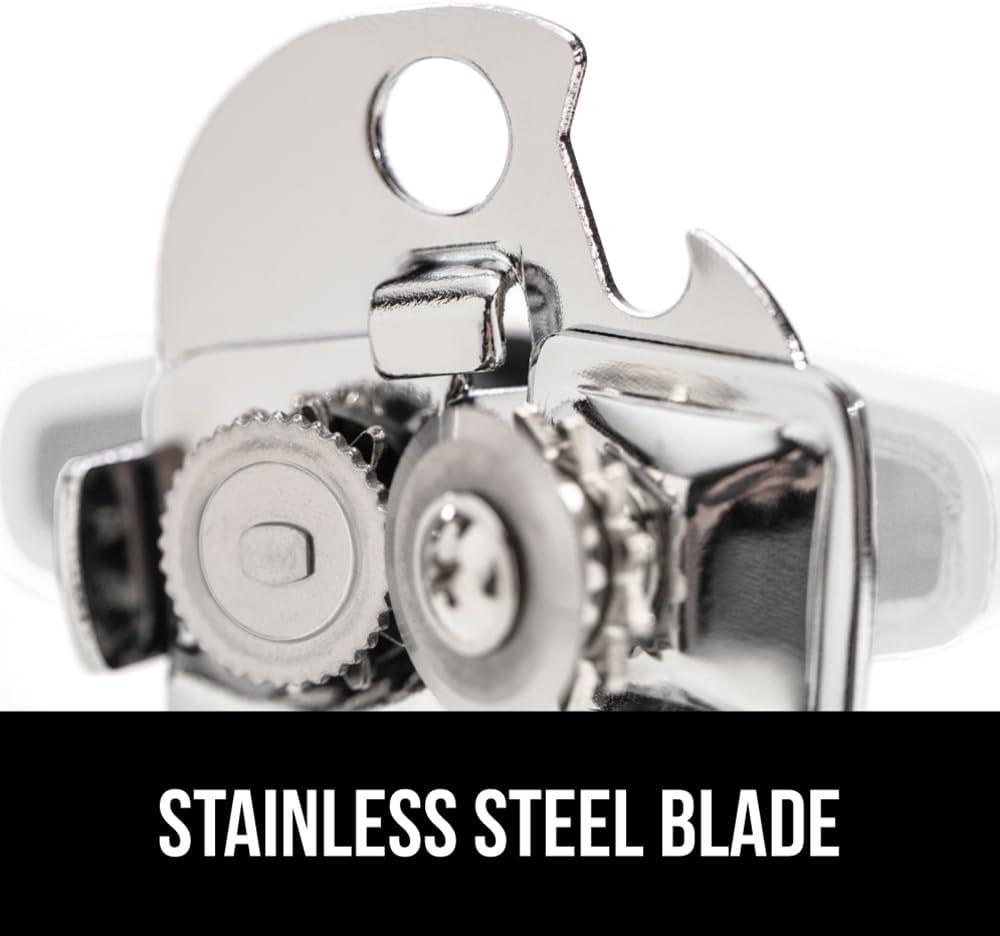 STRONG AND POWERFUL STAINLESS STEEL BLADE: finally, a more powerful can opener; sharp and durable 100 percent stainless steel cutting wheel will easily puncture all types of cans; rust resistant for long lasting use
