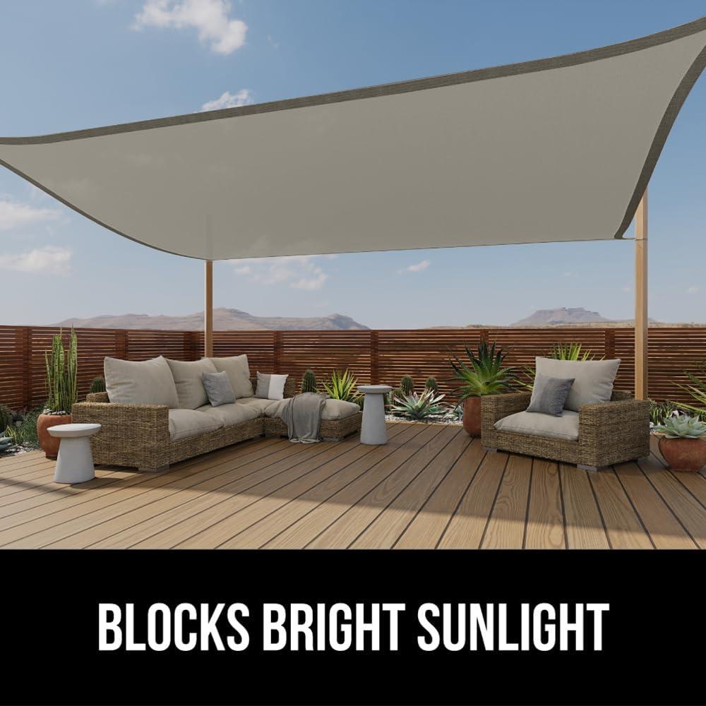 GORILLA GRIP Heavy Duty Sun Shade, UV Protection Fade Tear and Rust Resistant Rectangle Sunshade Canopy, Curved Edges Blocks Sunlight, Breathable Sail, Outdoor Patio, Lawn Garden 10×13 FT Sand(Butter Cream)