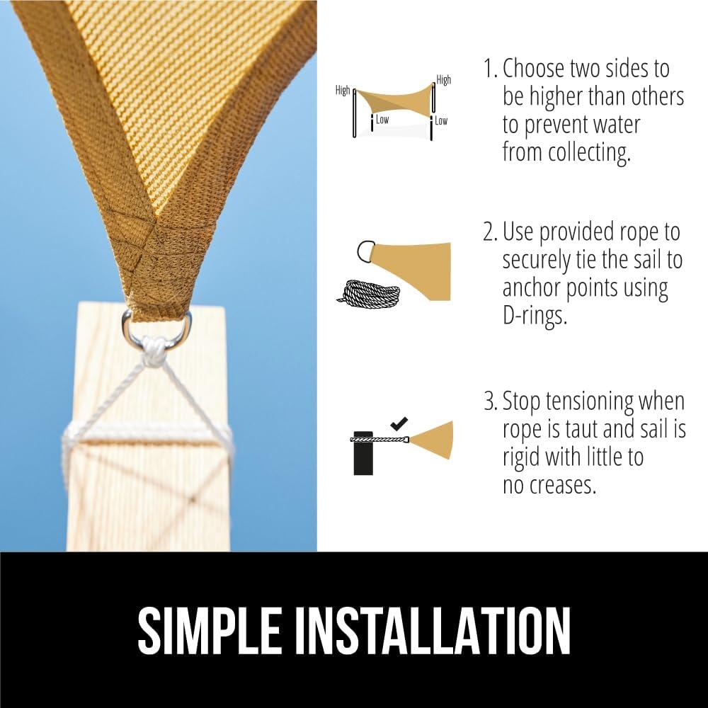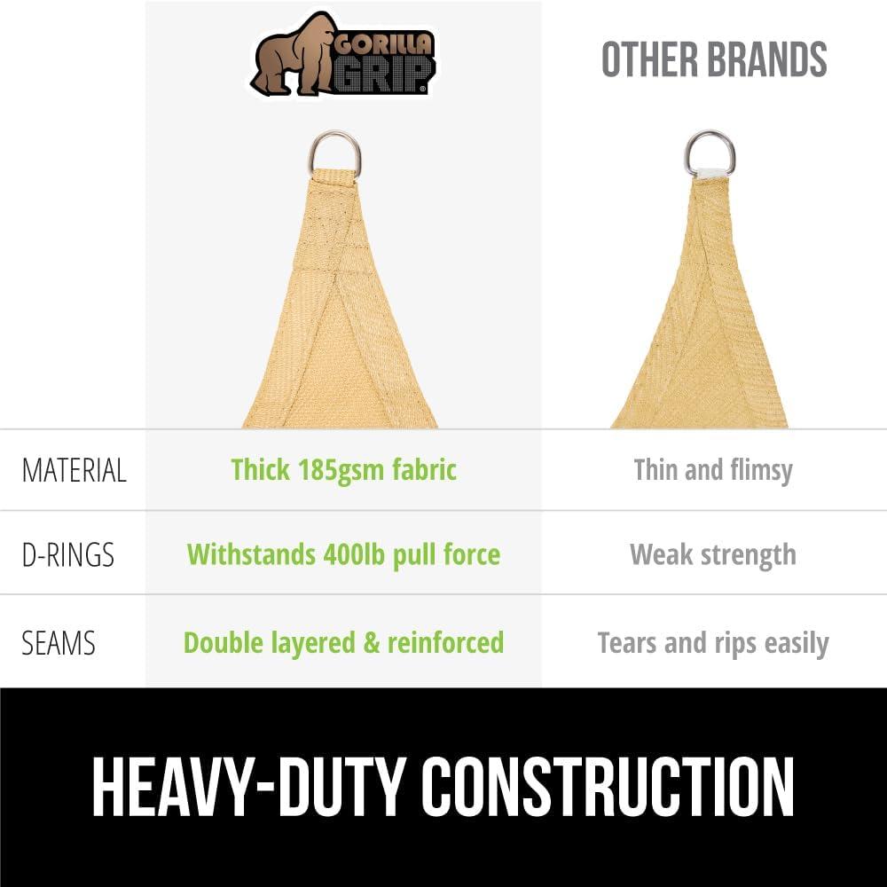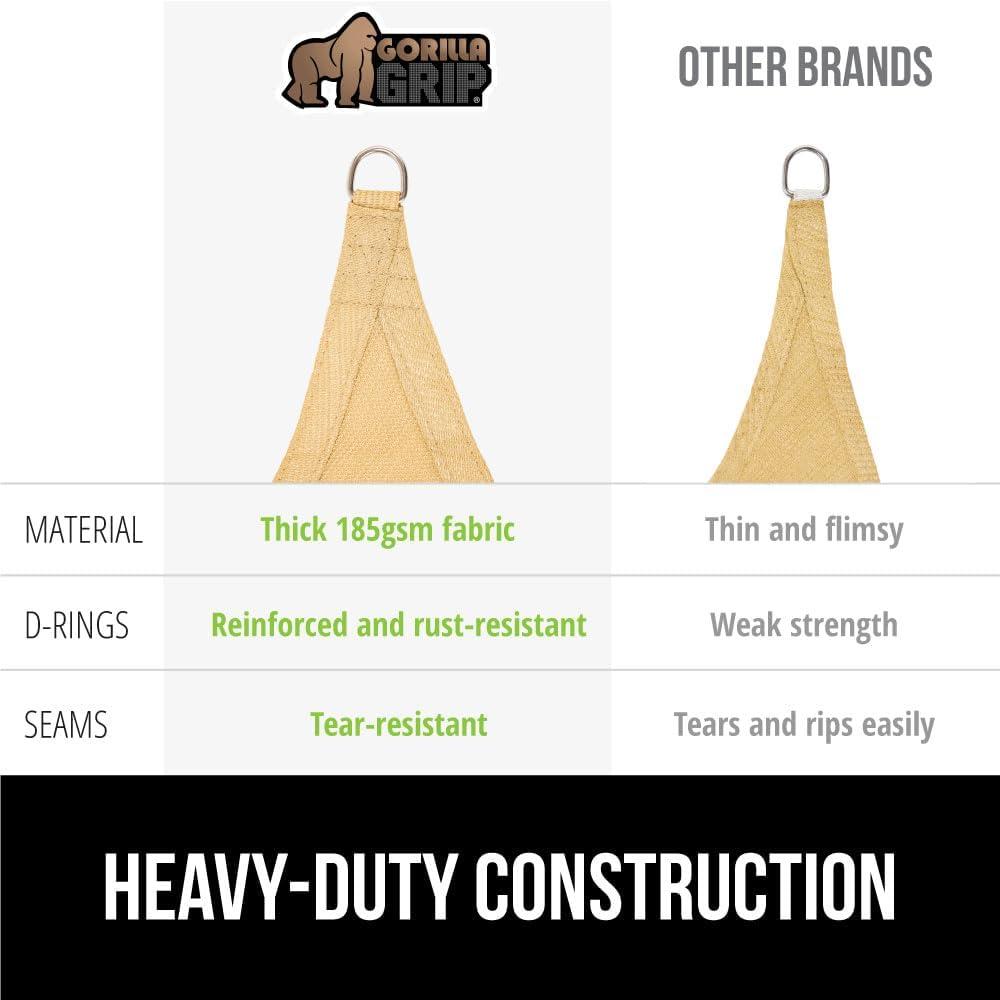 UP TO 87% SHADE AND UV RESISTANT: Gorilla Grip Shade Sails will transform your patio; the thick material is UV resistant and provides up to 87 percent shade; helps you stay protected and comfortable in bright sunlight