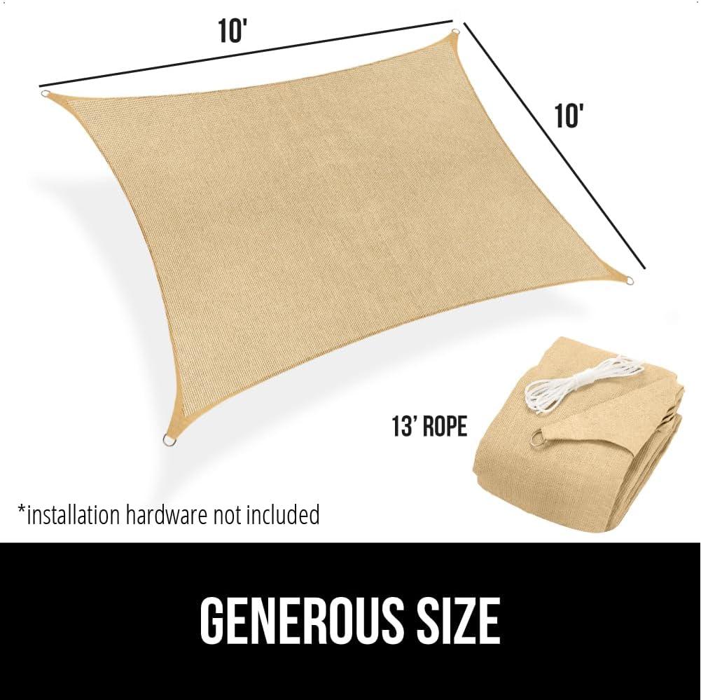 GORILLA GRIP Heavy Duty Sun Shade, UV Protection Fade Tear and Rust Resistant Rectangle Sunshade Canopy, Curved Edges Blocks Sunlight, Breathable Sail, Outdoor Patio, Lawn Garden 10×13 FT Sand(Sand)