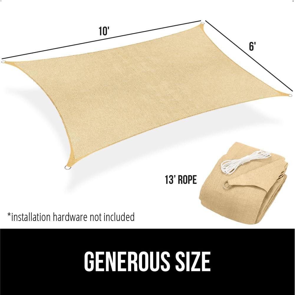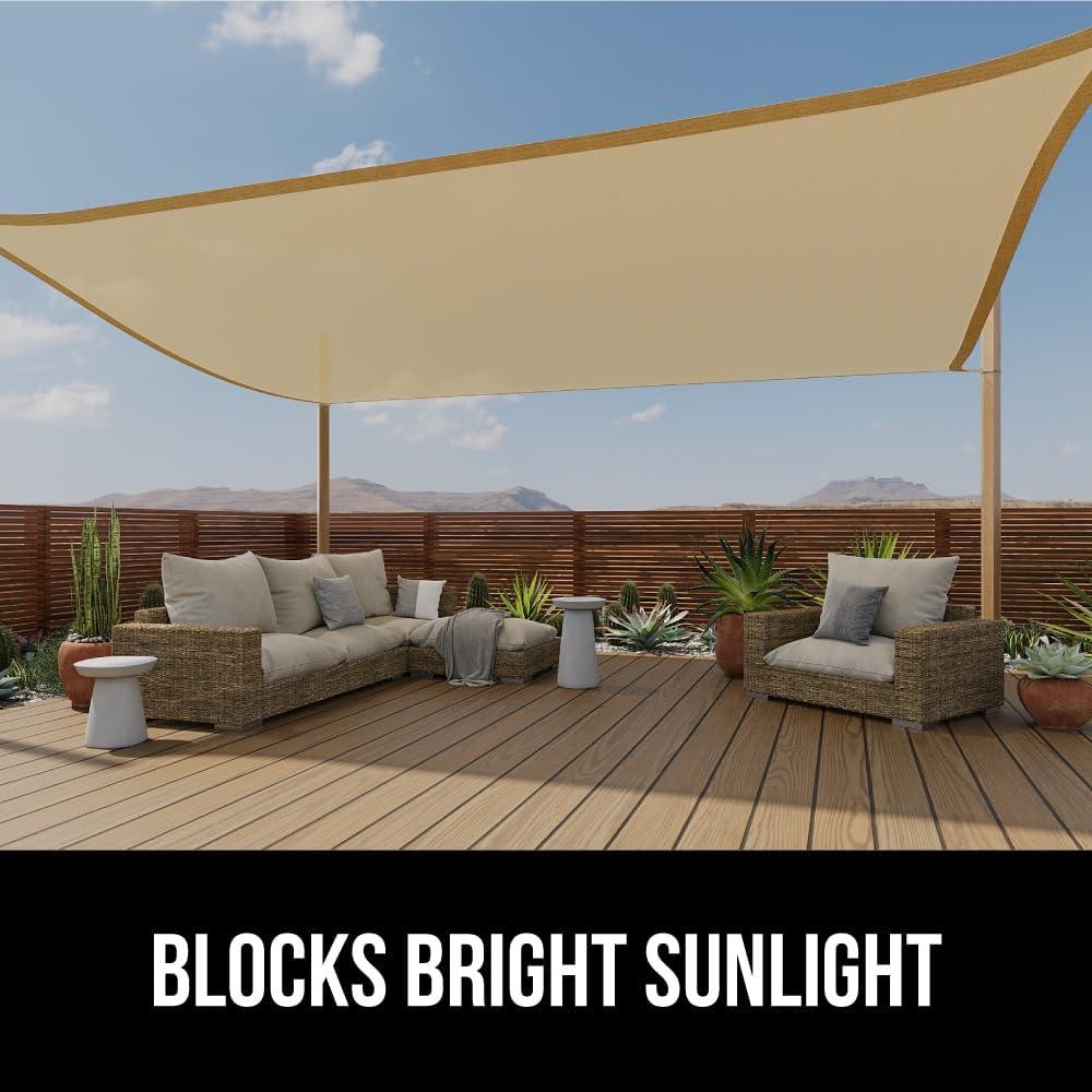 GORILLA GRIP Heavy Duty Sun Shade, UV Protection Fade Tear and Rust Resistant Rectangle Sunshade Canopy, Curved Edges Blocks Sunlight, Breathable Sail, Outdoor Patio, Lawn Garden 10x13 FT Sand(Sand)
