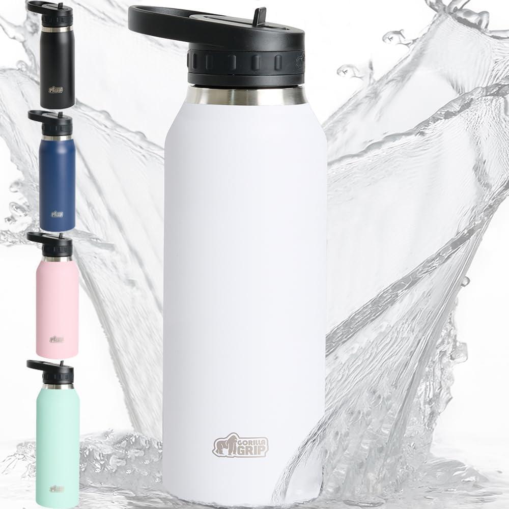 Save up to 40% on GORILLA GRIP Insulated Stainless Steel Water Bottle with Straw, 32 oz, Leak Proof BPA-Free Reusable Travel Bottles for Sports, School, Keep Drinks Cold, Dent Resistant Tumbler, Dishwasher Safe, Navy(White) styles during our end-of-season sale.