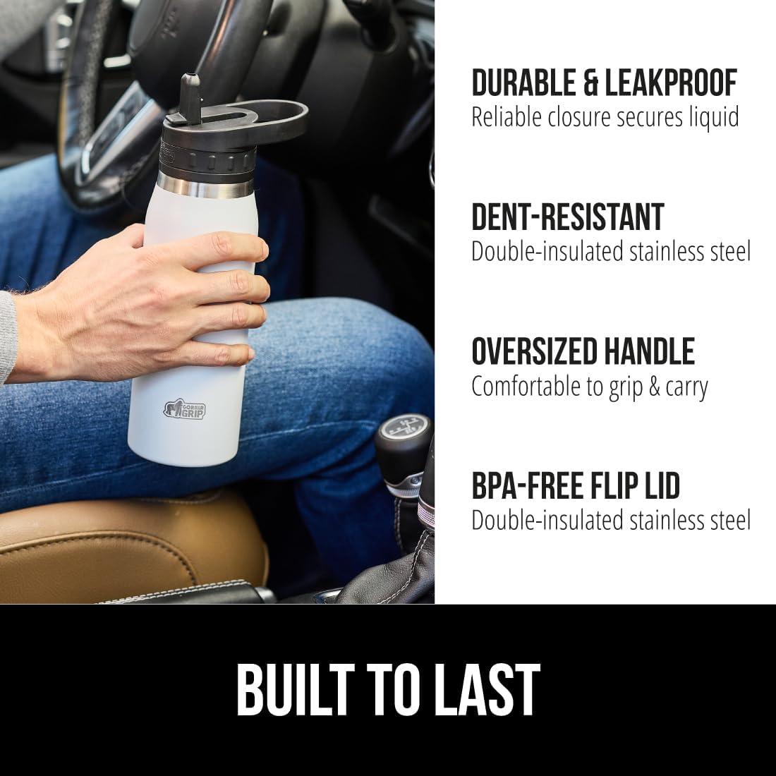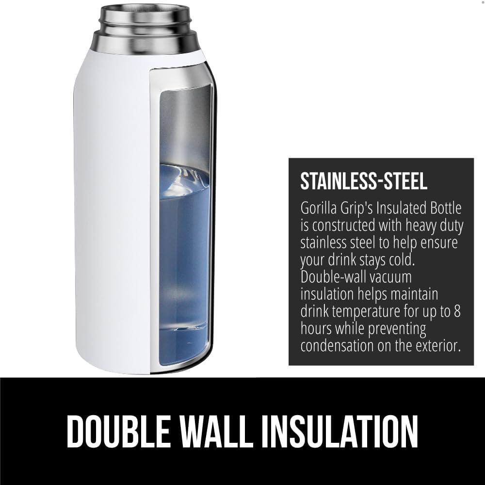 KEEPS DRINKS COLD FOR 8 HOURS: the Gorilla Grip water bottle is constructed from heavy duty stainless steel and features double wall vacuum insulation to help keep drinks cold for up to 8 hours