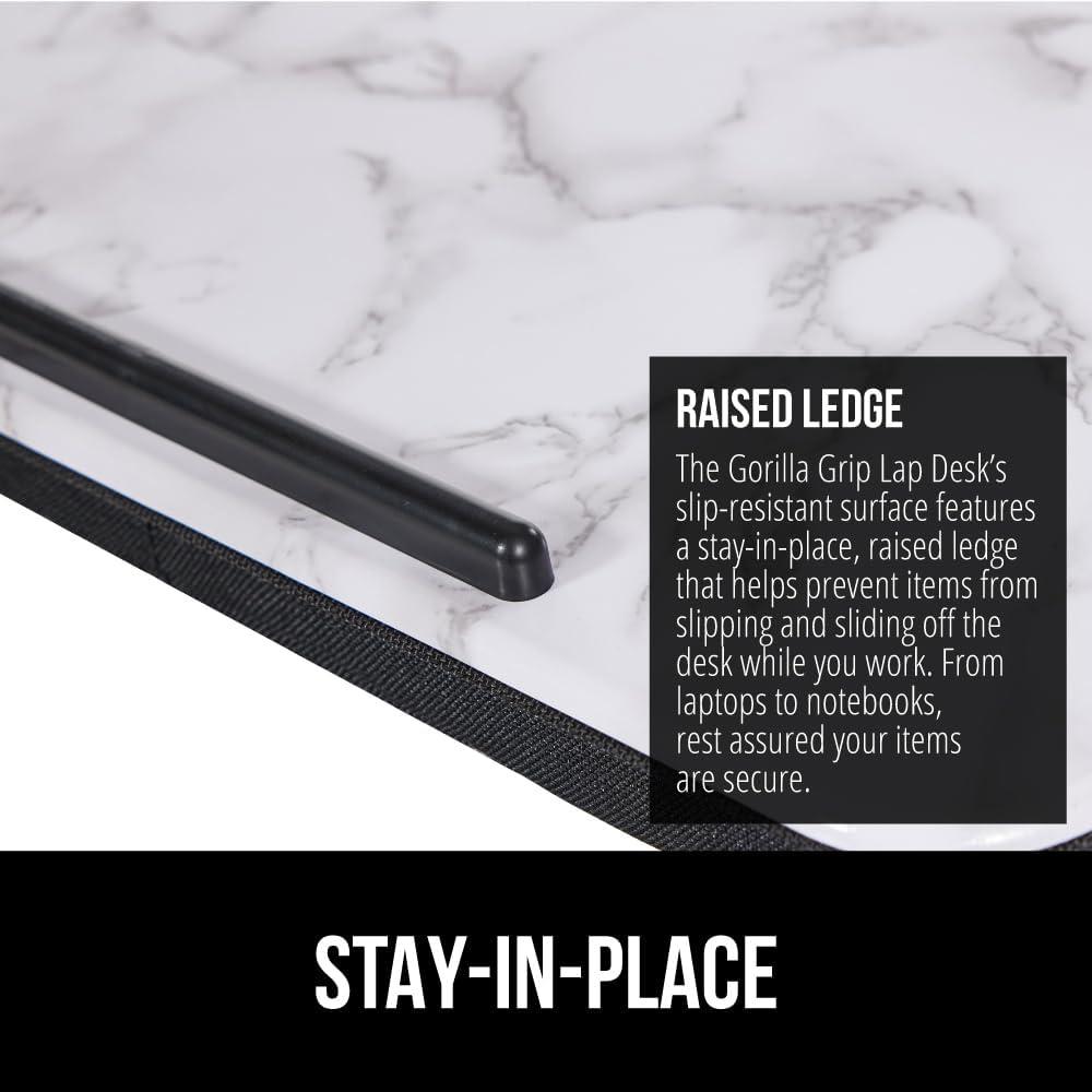 GORILLA GRIP Laptop Lap Desk with Phone Holder, Pillow Cushion Desks Fit Laptops up to 15.6", Tray Ledge Keep Computers in Place, Portable Travel Workstation Essentials for Home, Light Wood Color(Marble)