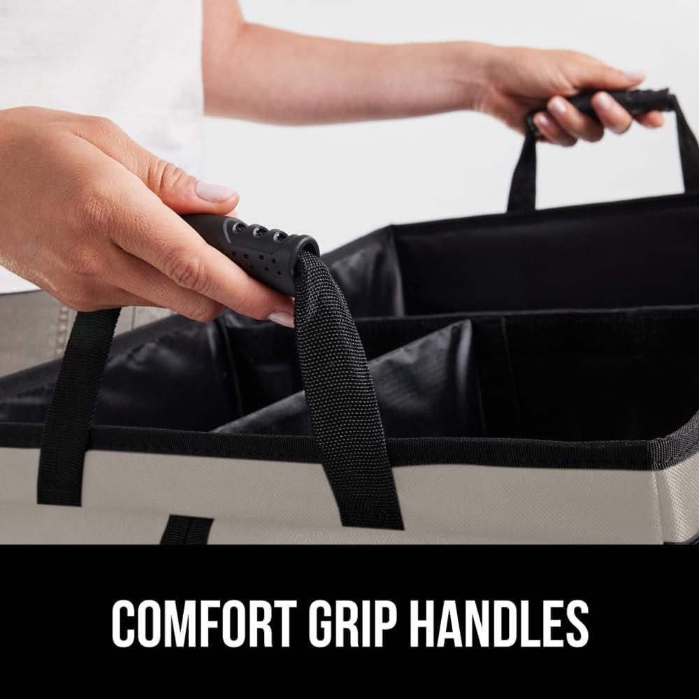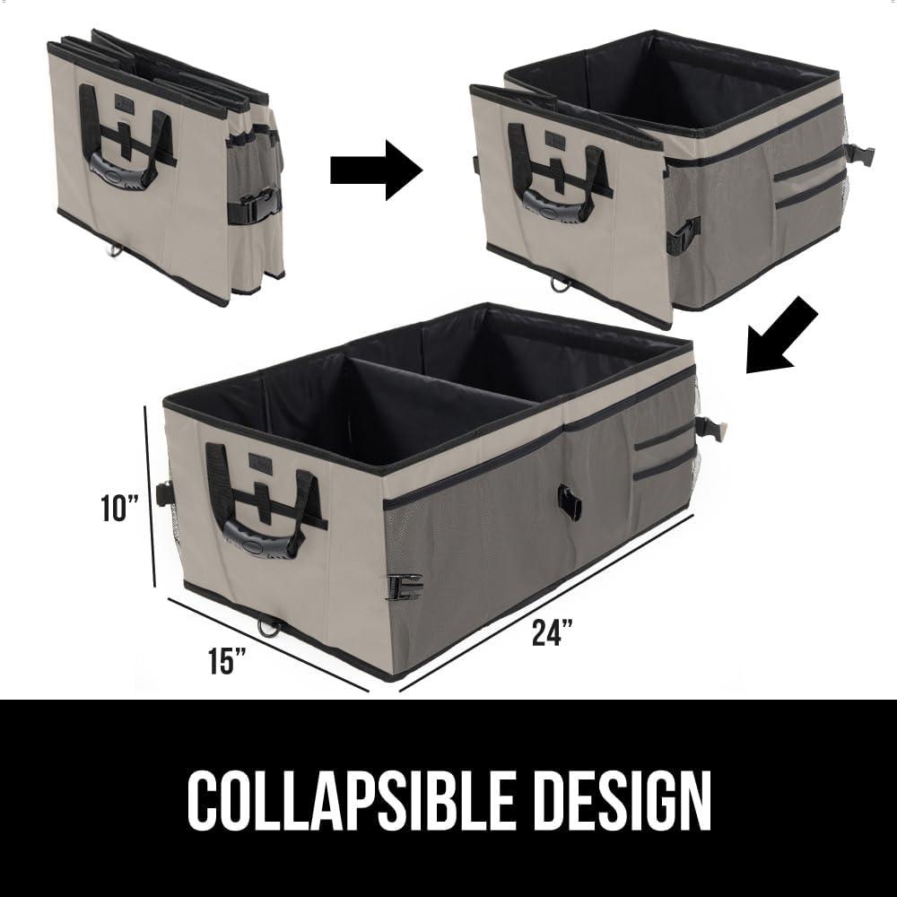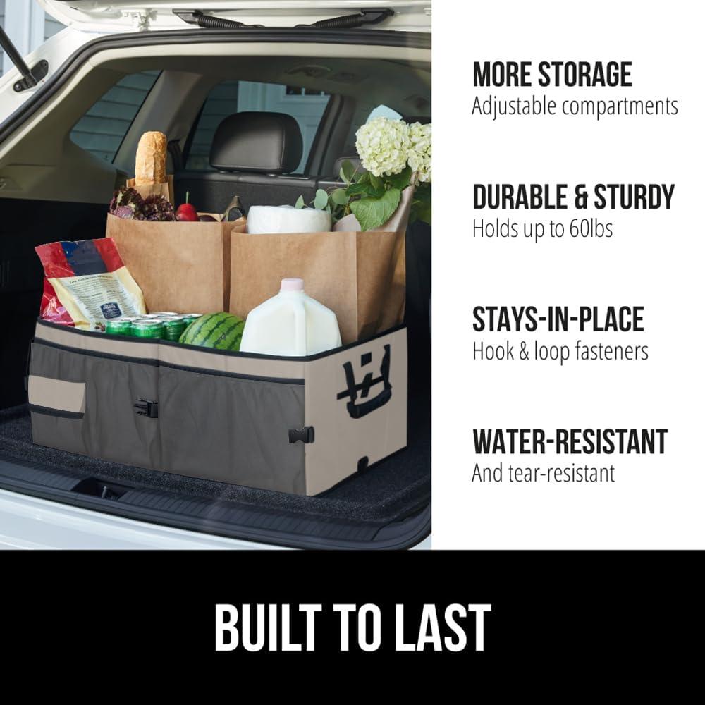 LARGE COLLAPSIBLE DESIGN: easy to install and adjust; organizer can be folded flat for storage, opened to 1 large compartment or fully extended to 2 large compartments; durable buckles secure compartments; includes 1 extra divider to create smaller compartments