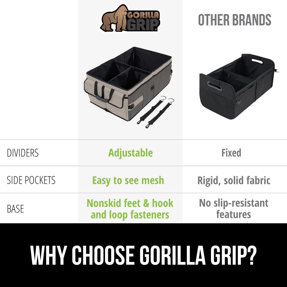 STAYS IN PLACE: nonskid feet on base help to reduce sliding while additional hook and loop strips grip to most carpeting; hook and loop strips include optional covers if not in use; organizer also includes 2 adjustable cargo straps for additional security while driving
