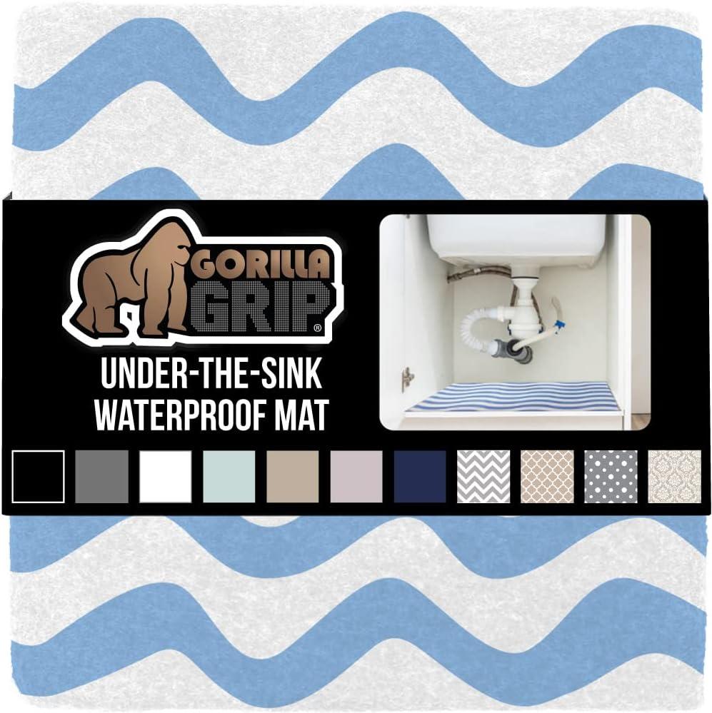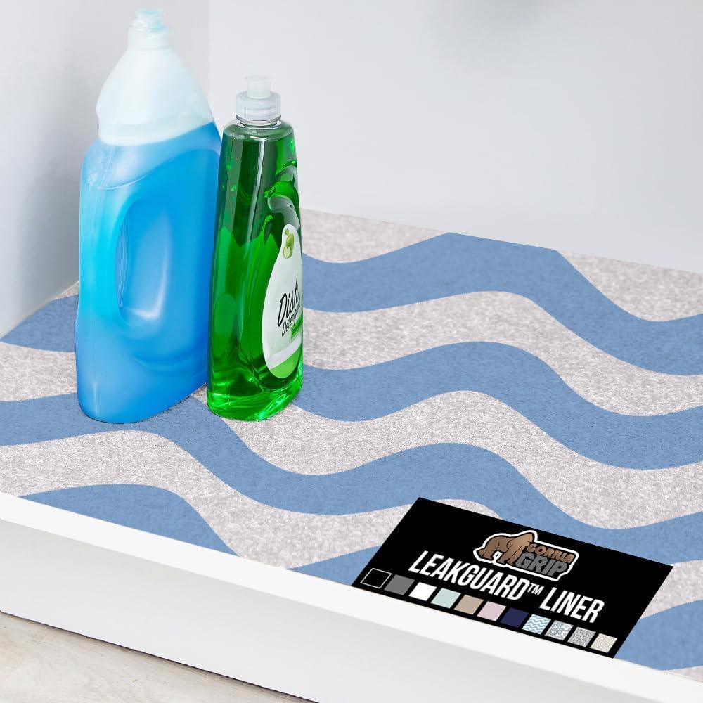 imageGORILLA GRIP LeakGuard NonAdhesive Under Sink Mat for Kitchen Cabinet Waterproof Quick Dry Shelf Liner Durable Absorbent Felt Mats for Bathroom Sinks Cabinets Dresser Easy to Trim 24x30 CharcoalWaves Sky BlueWhite