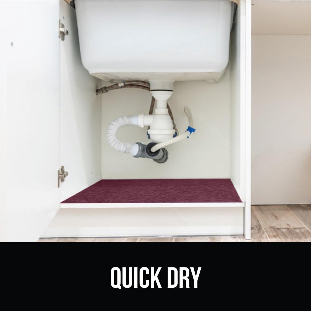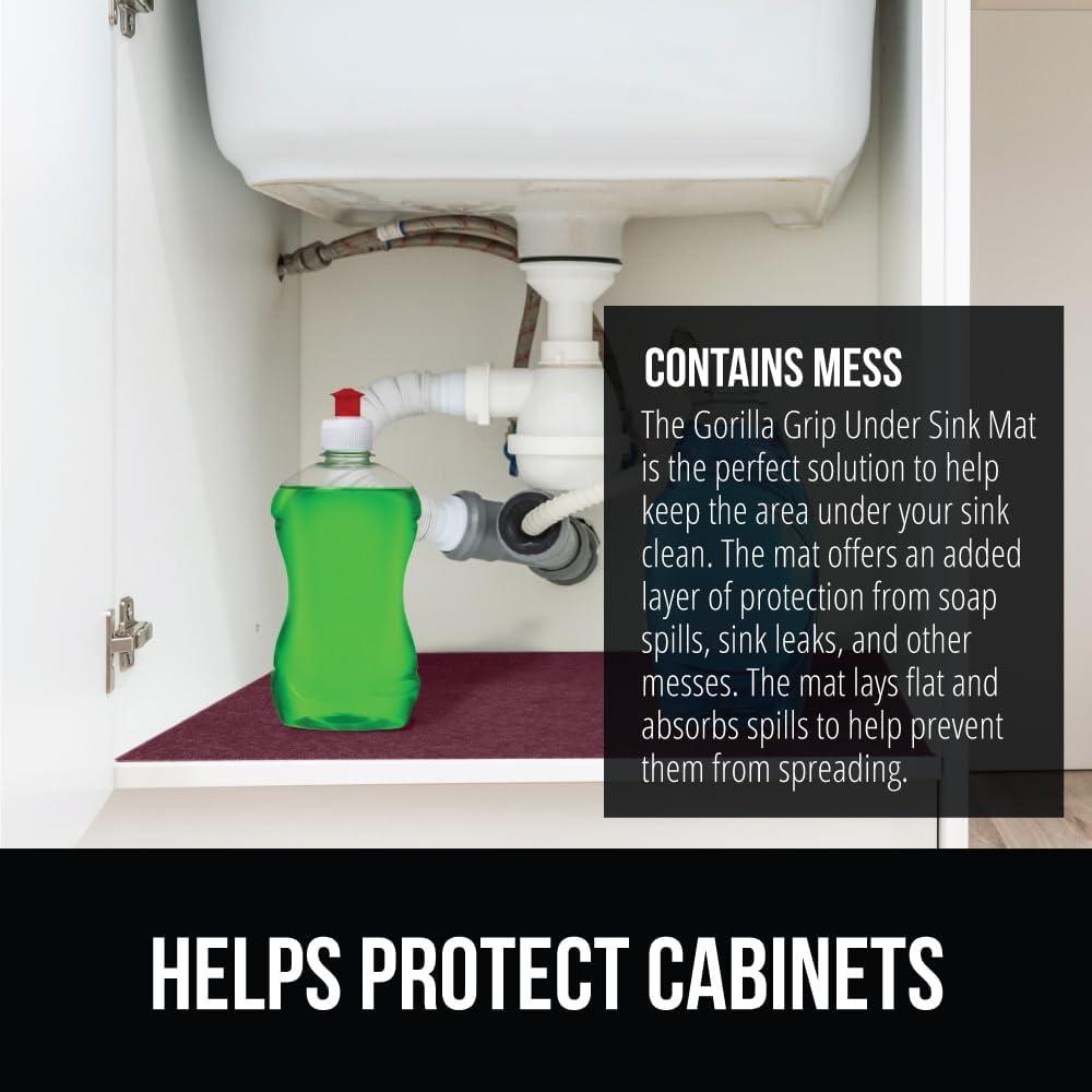 100% WATERPROOF: the Gorilla Grip LeakGuard liner is constructed from ultra thick and absorbent felt fabric on the topside, and a 100 percent waterproof bottom layer, the Gorilla Grip Under Sink Liner is designed to quickly absorb and disperse liquids while providing a strong barrier between liquids and cabinets