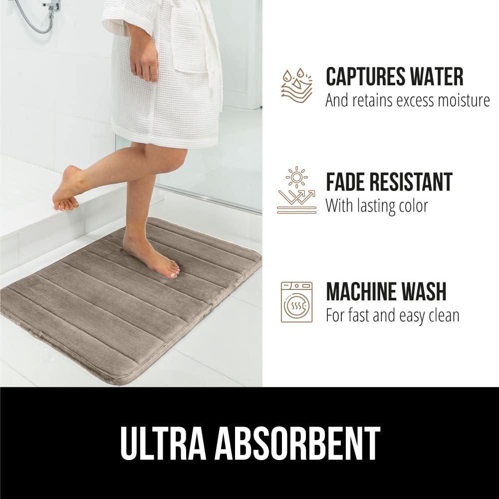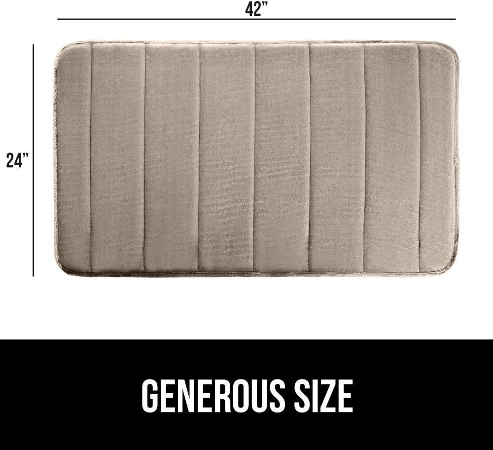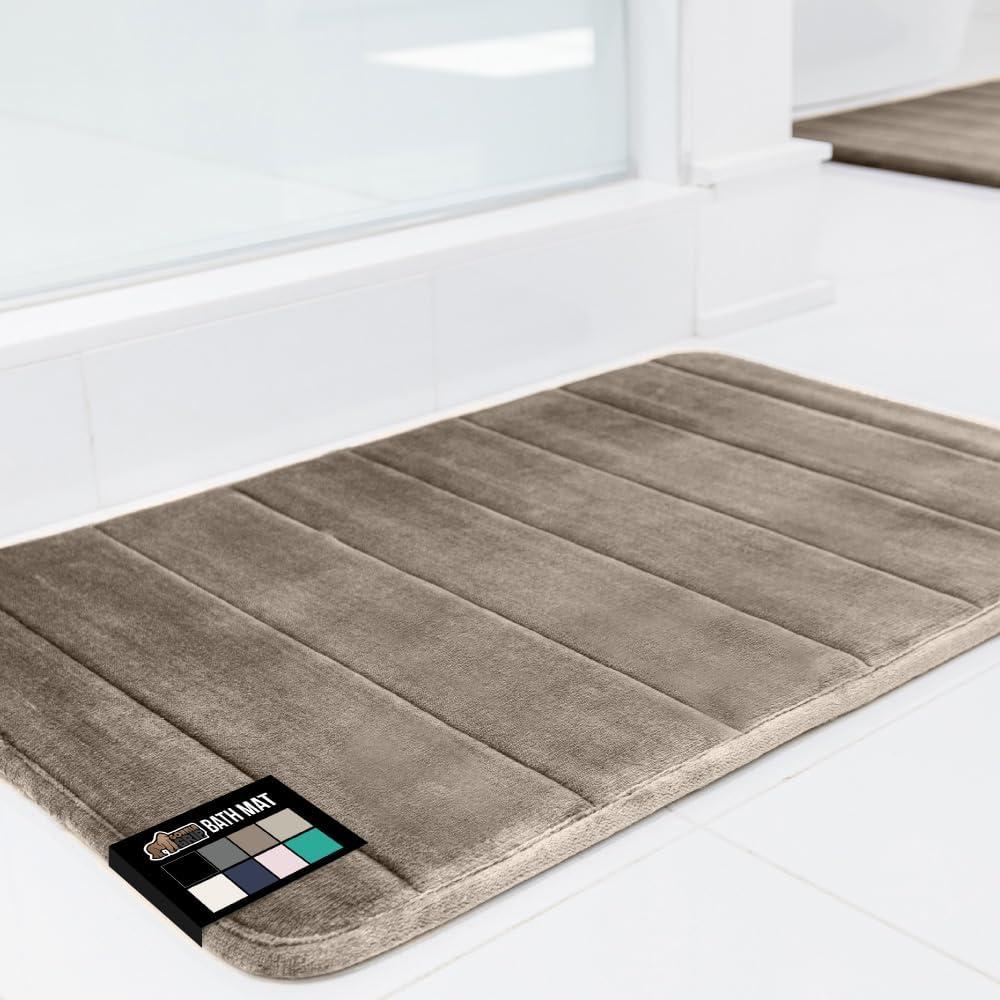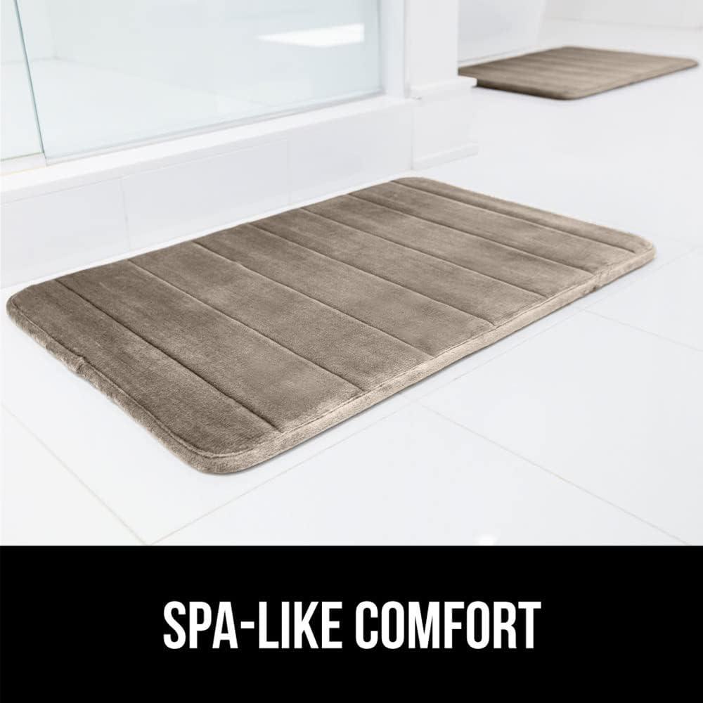 GORILLA GRIP Memory Foam Bath Mat, Soft Absorbent US Designed Bathroom Rug, Gripping Dots Machine Washable Bathmat, Cushioned Floor Mats, Shower Sink Rugs Room Décor Accessories, 24x17 Graphite Gray(Striped Taupe)