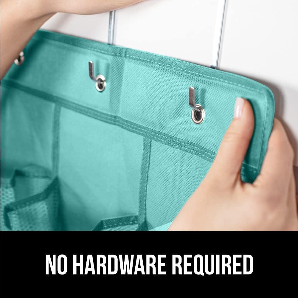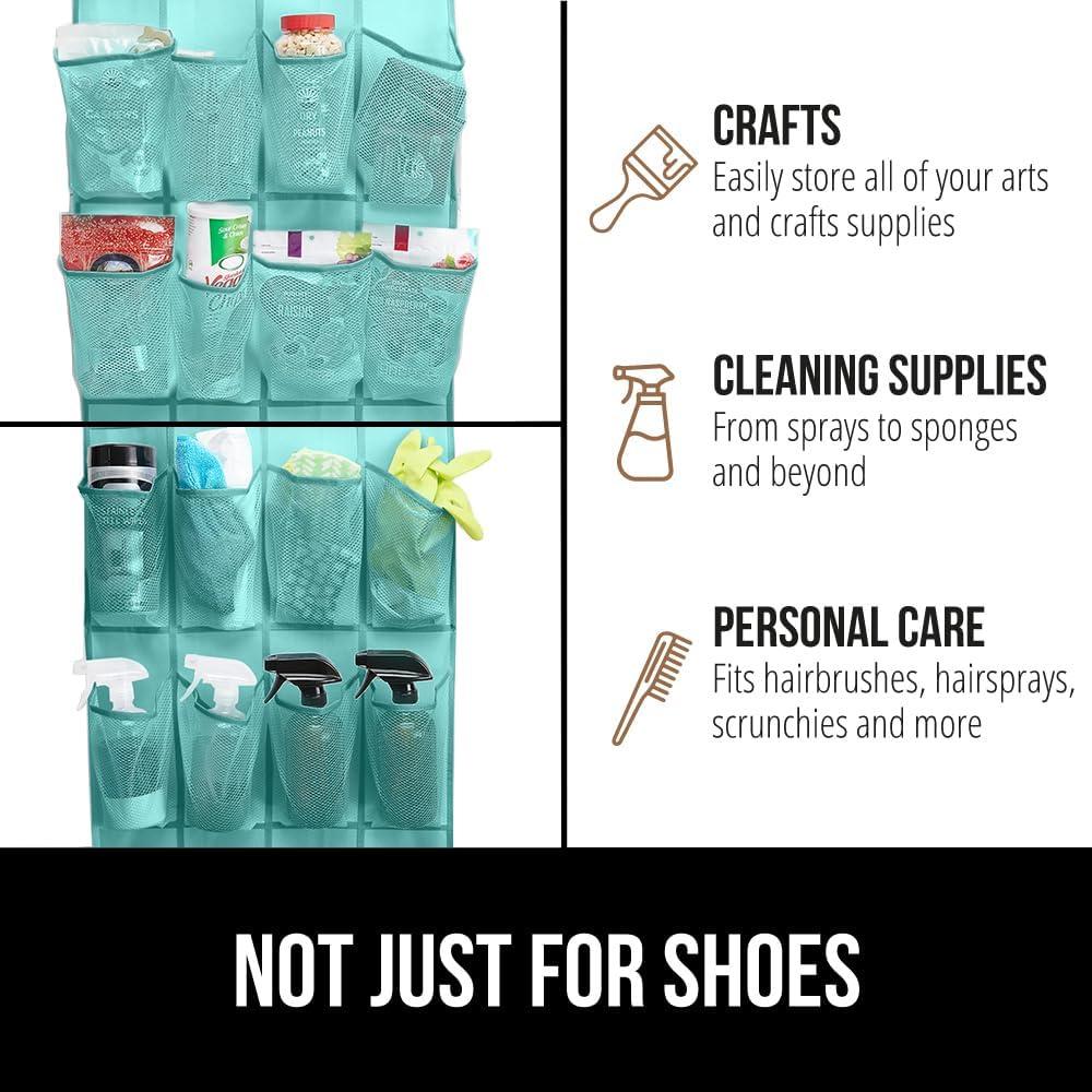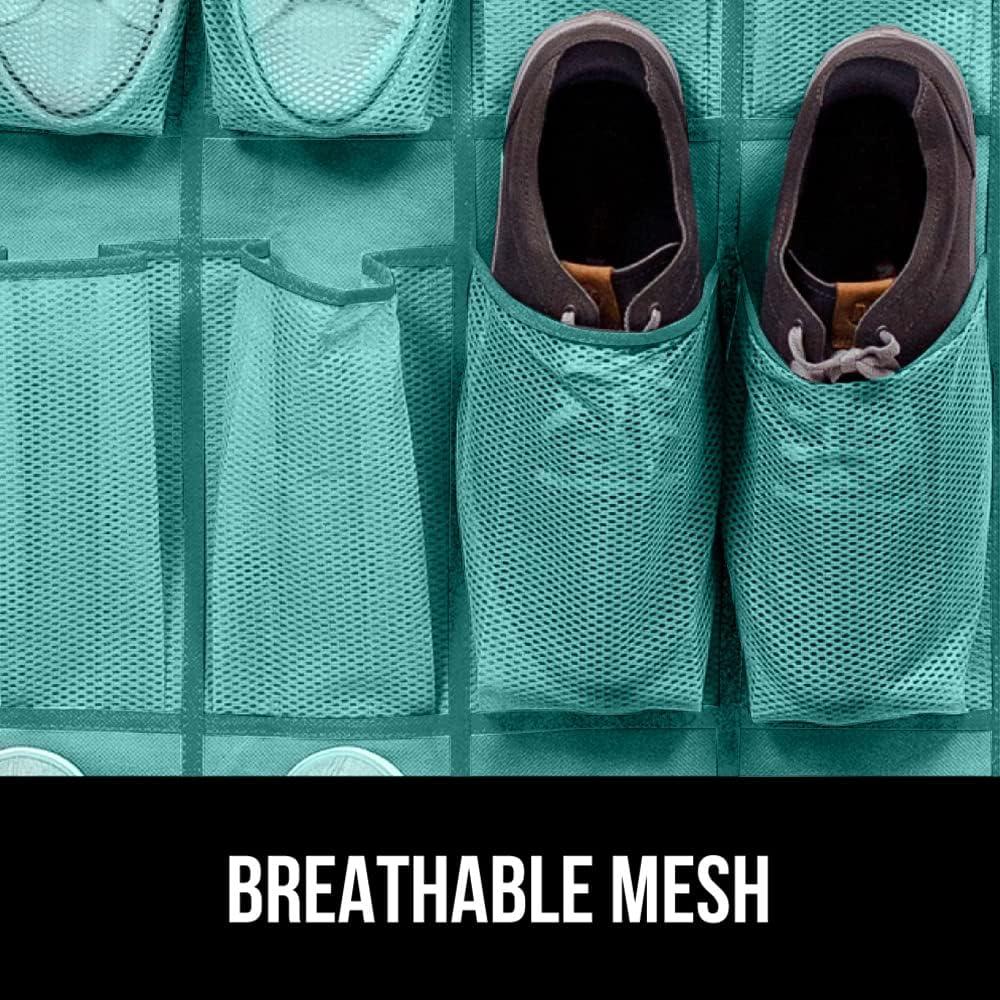 GORILLA GRIP Over the Door Shoe Organizer, 24 Large Breathable Mesh Pockets, Space Saving Hanging Storage Holder, Closet Rack Hanger Holds Up to 40 lbs, Hangs on Closets for Shoes, Accessories, Linen(Turquoise)