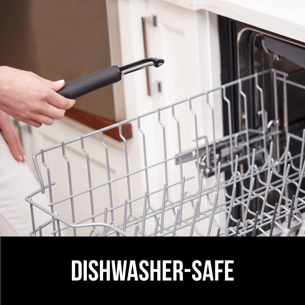 GORILLA GRIP Patented BPA-Free Sharp Stainless Steel Swivel Vegetable Peeler, Comfortable Handle Potato Peelers, Smooth Peeling, Peel Carrots Apple, Includes Blade Cover, Kitchen Tool, Black(Black)