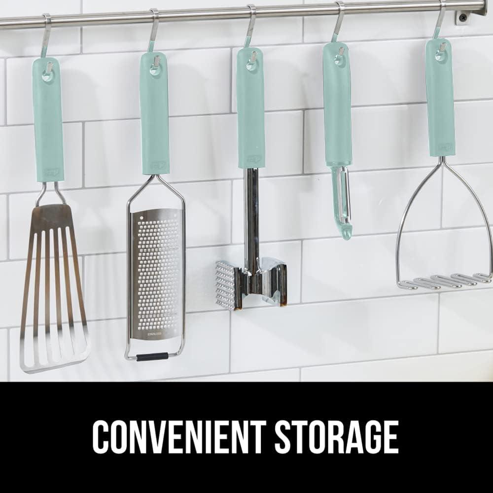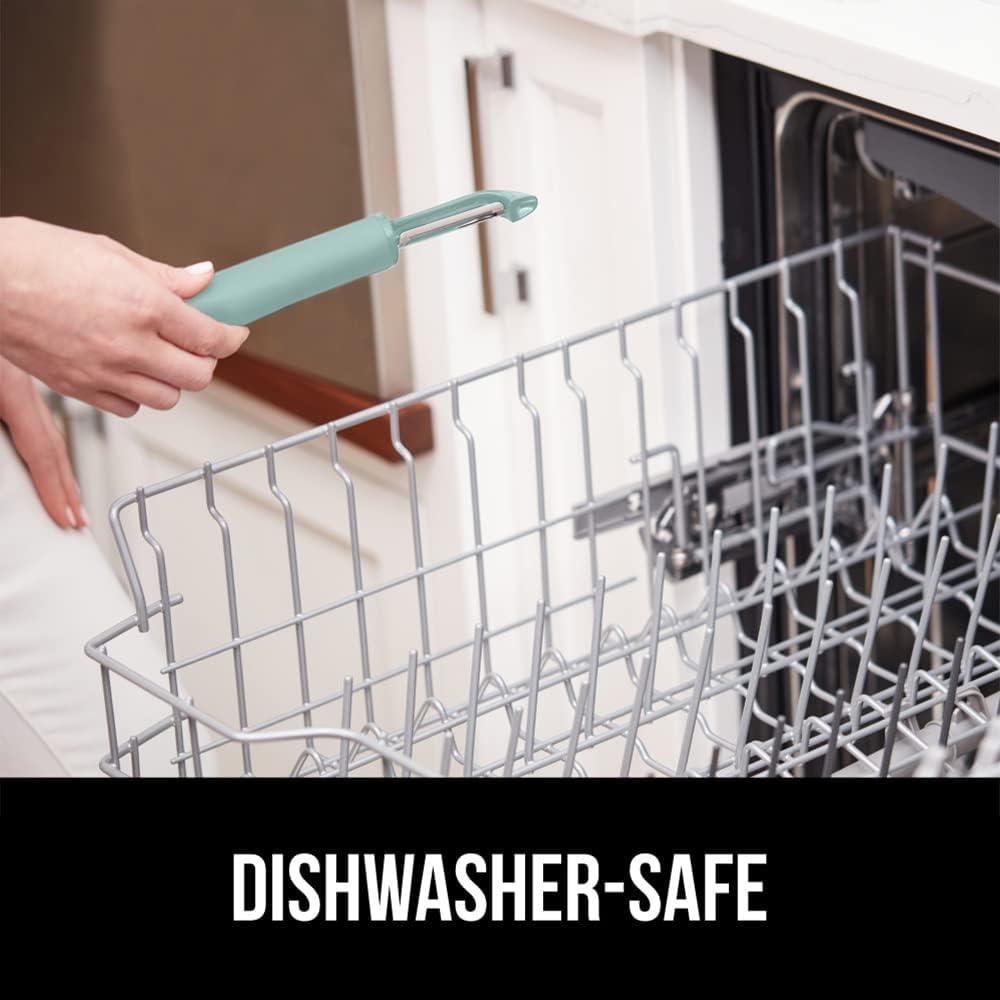 SHARP STAINLESS STEEL: vegetable peeler's extra sharp and durable blades easily peel through even the thickest and toughest of produce; constructed from durable and rust-resistant stainless steel and designed to last; BPA-free, food grade, and dishwasher safe for easy cleaning