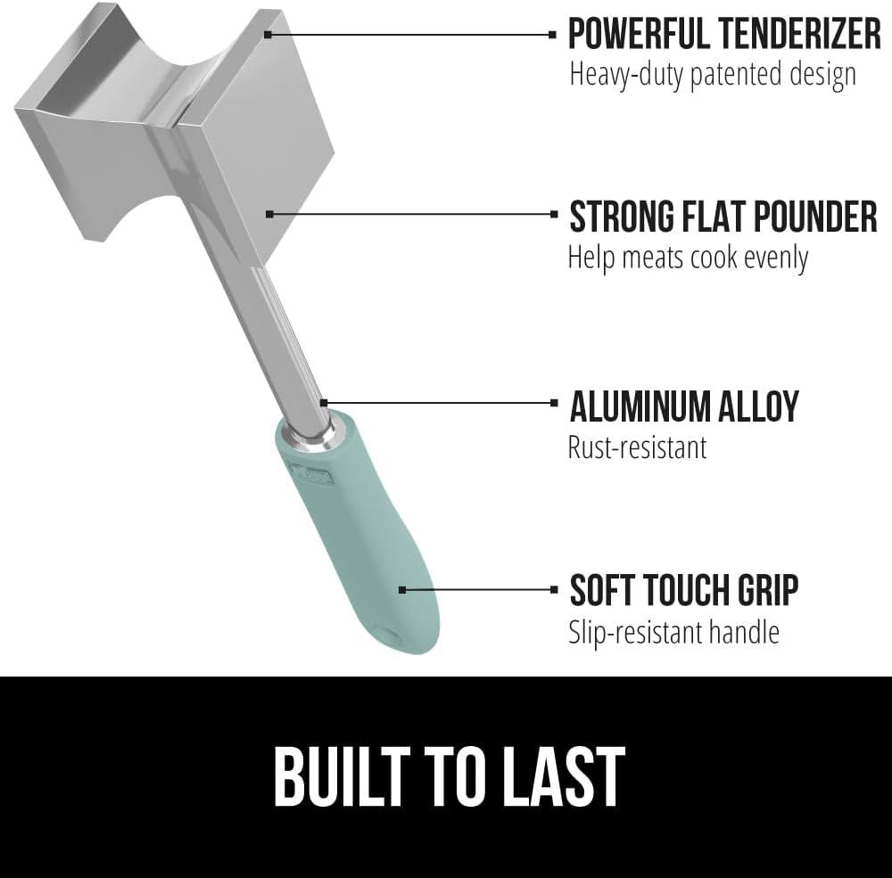 GORILLA GRIP Patented Dual-Sided Meat Tenderizer, Heavy Duty Kitchen Mallet with Soft Handle, Spiked Side Tenderizes and Smooth Flattens, Maximize Food Flavor, Commercial Grade Chicken Pounder, White(Mint)