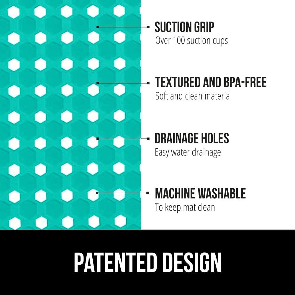 PATENTED DESIGN WITH POWERFUL SUCTION GRIP: a shower mat designed to securely stay in place; the patented mat features hundreds of suction cups that effectively help secure the mat to your tub or shower floor