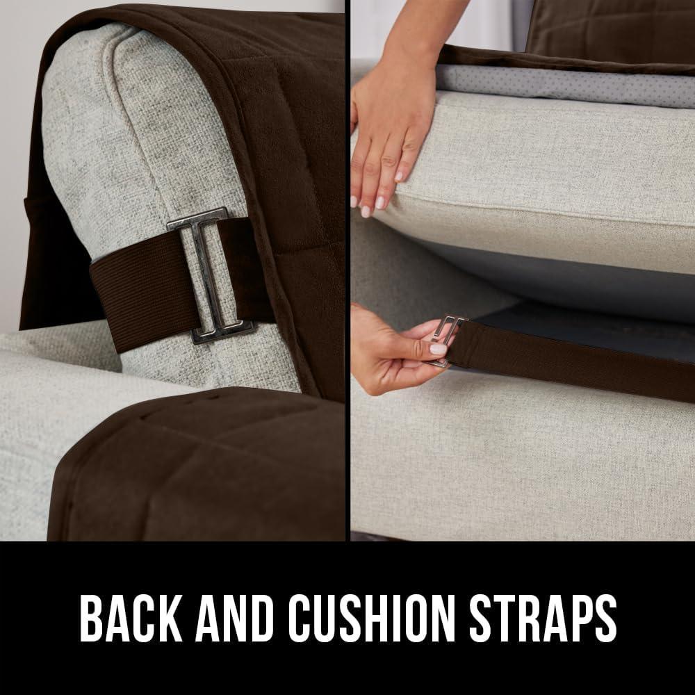 TWO PATENTED STRAPS: 2 patented, 2 inch thick straps wrap around the back and under seat cushions to help keep cover secure; an ideal choice for busy homes