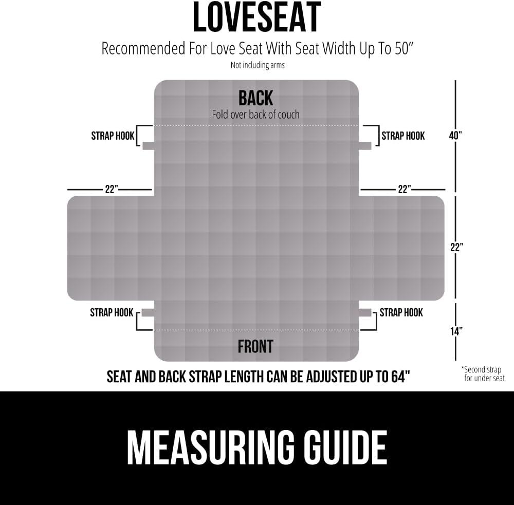 TWO PATENTED STRAPS: 2 patented, 2 inch thick straps wrap around the back and under seat cushions to help keep cover secure; an ideal choice for busy homes