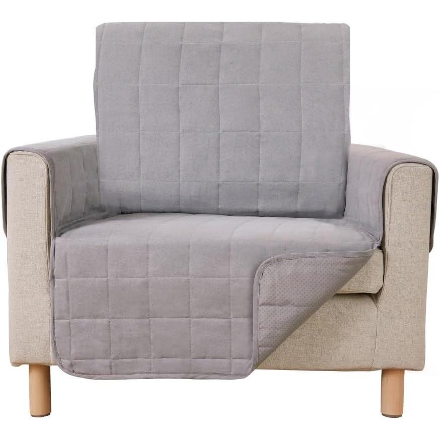 GORILLA GRIP Patented Waterproof Slip-Resistant 23" Chair Protector Cover, for Leather or Fabric Couch Cushion, Large Microsuede Furniture Covers Dogs Pets Machine Washable Slipcover, Gray(Grey)