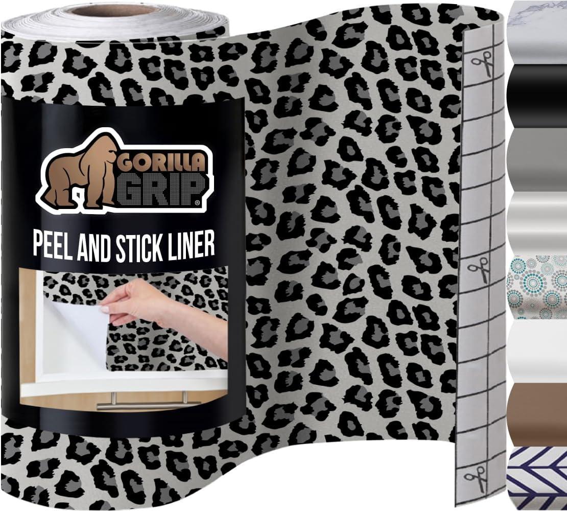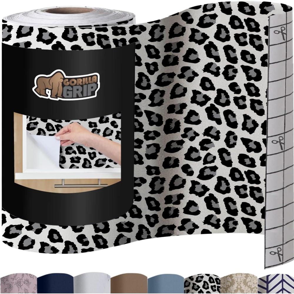 GORILLA GRIP Peel and Stick Paper, Removable Cover for Books, Shelves, Countertops, Drawers, Cabinets and Crafts, Easy Install Kitchen Decor, Shelf, Drawer, Cabinet Liners, 11.8 in x 20 FT Gray(Gray Leopard)