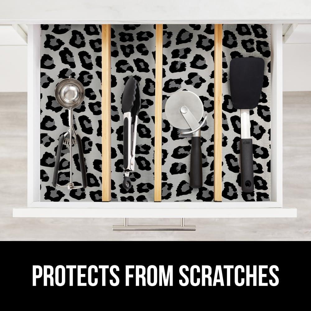 imageGORILLA GRIP Peel and Stick Paper Removable Cover for Books Shelves Countertops Drawers Cabinets and Crafts Easy Install Kitchen Decor Shelf Drawer Cabinet Liners 118 in x 20 FT GrayGray Leopard