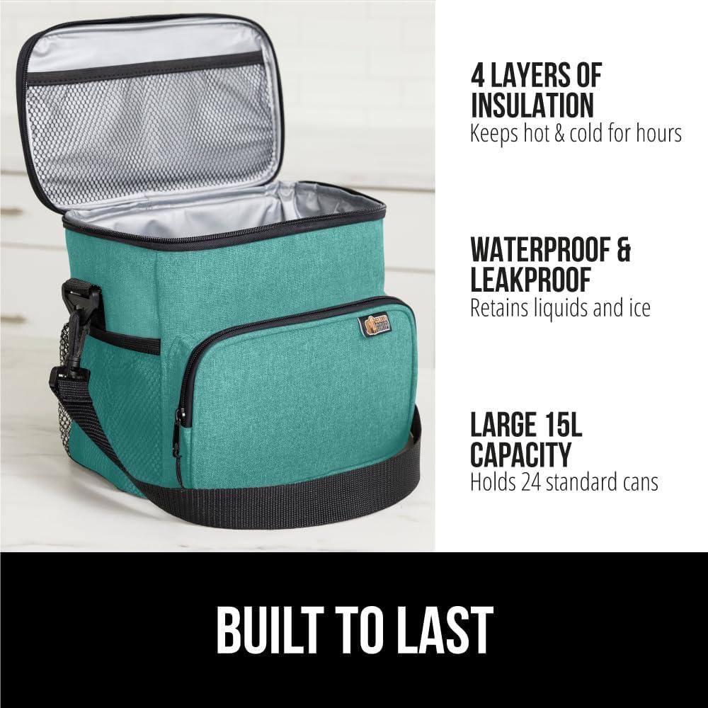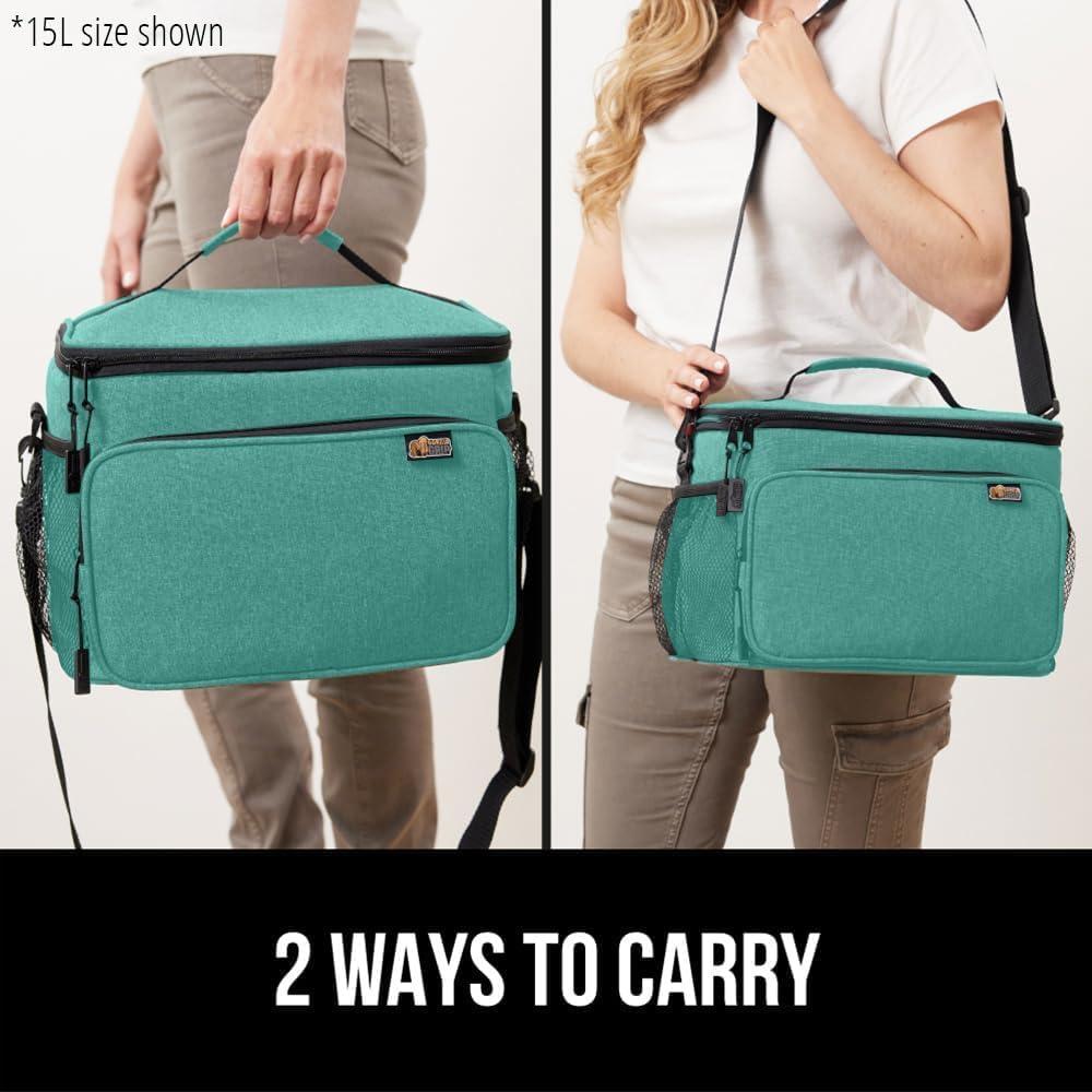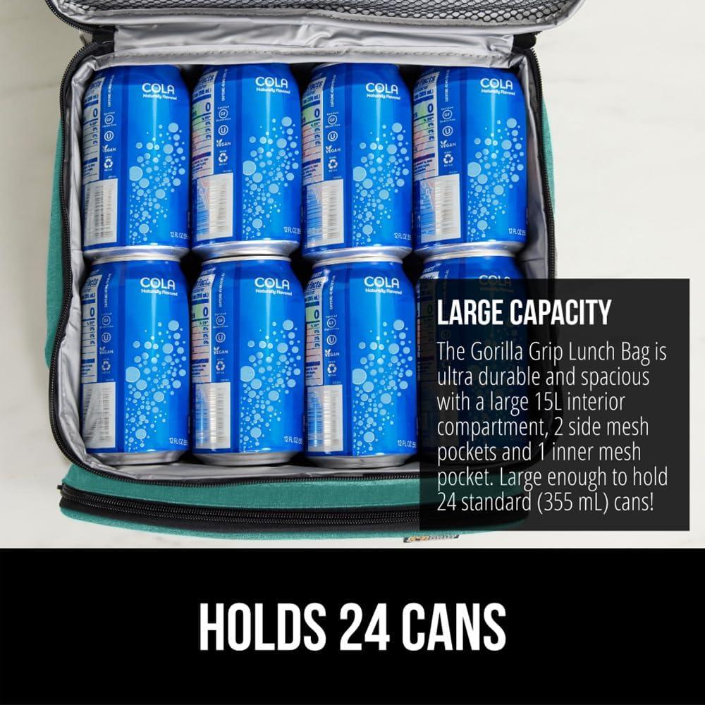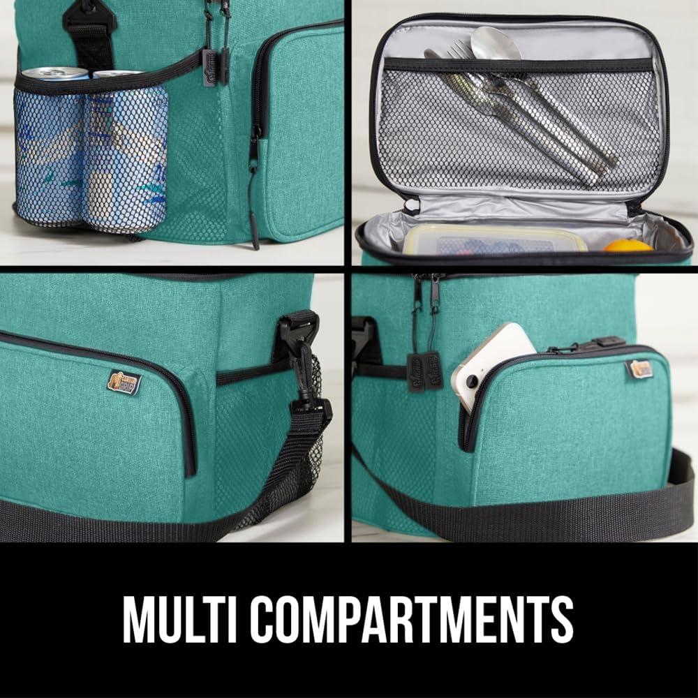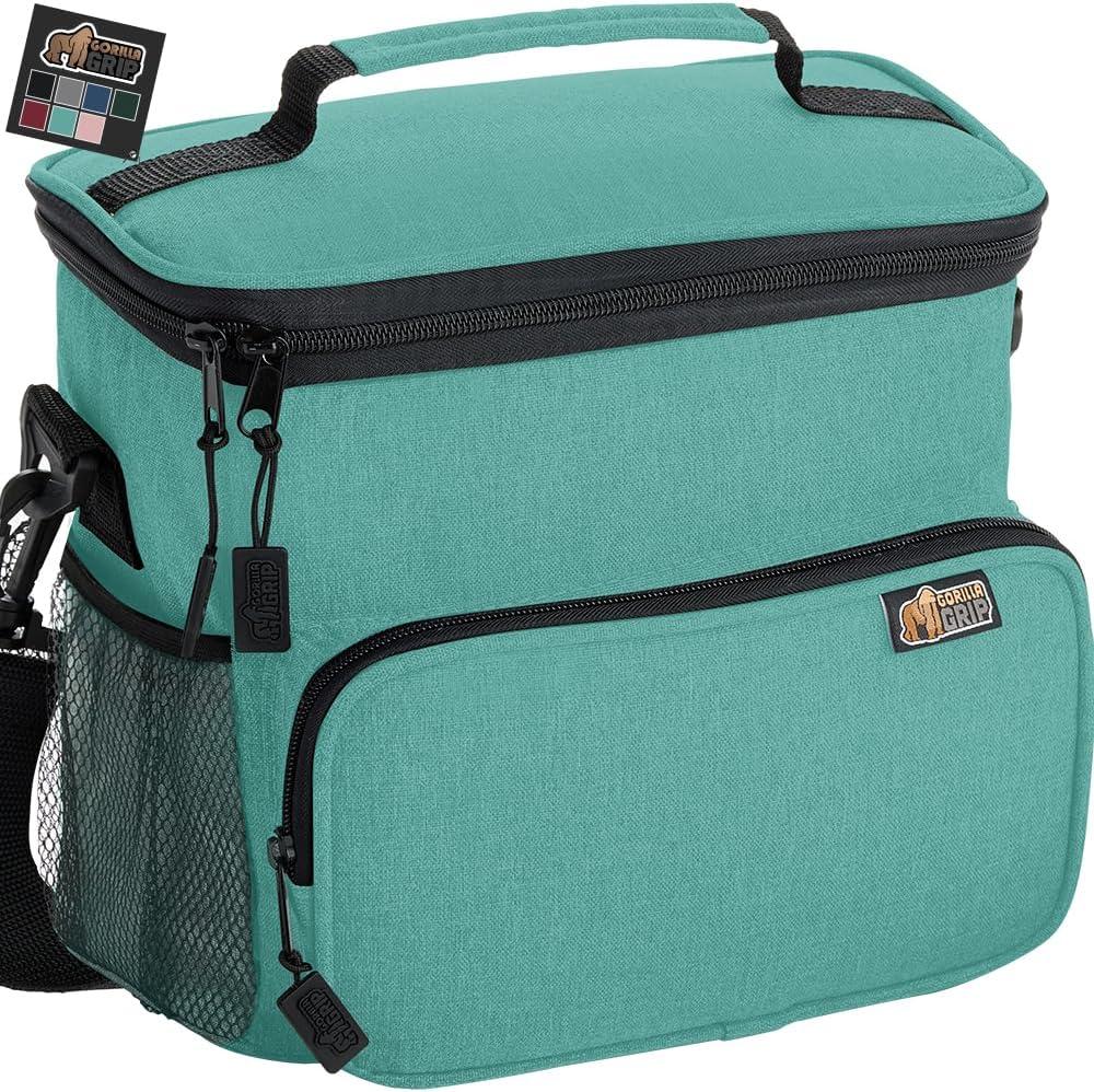 imageGORILLA GRIP Reusable Insulated Lunch Box Bag for Women Men Large Leakproof Soft Cooler Bags Multiple Compartments Mesh Pockets Adjustable Strap Food Tote Keeps Drinks Cold 8L 10x9 BlackTurquoise