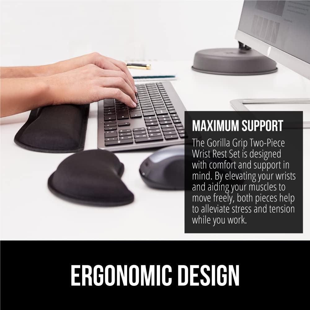 GORILLA GRIP Silky Gel Memory Foam Wrist Rest for Computer Keyboard, Mouse, Ergonomic Design for Typing Pain Relief, Desk Pads Support Hand and Arm, Mousepad Rests, Stain Resistant, 2 Piece Pad, Black(Black)