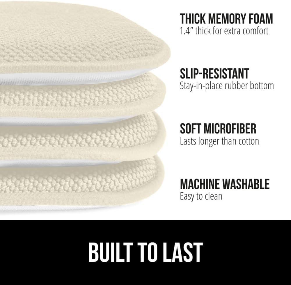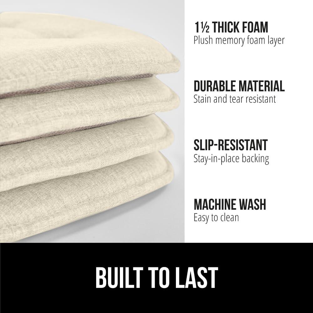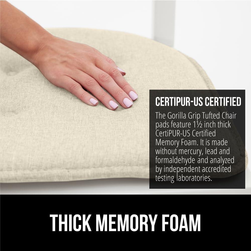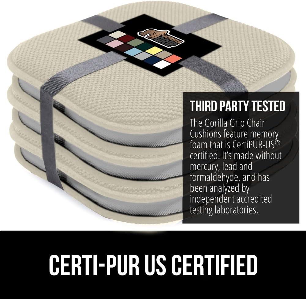 GORILLA GRIP Slip Resistant Chair Cushions, No Ties Required, Memory Foam Pads for Dining Room, Kitchen Table, Office, Rocking Chairs, Plush Seat Cover Cushion Pad, Home Decor, Set of 4, 16x16, Gray(Cream)