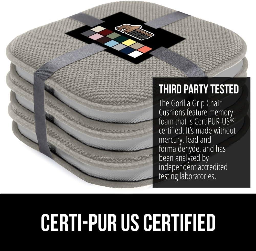 GORILLA GRIP Slip Resistant Chair Cushions, No Ties Required, Memory Foam Pads for Dining Room, Kitchen Table, Office, Rocking Chairs, Plush Seat Cover Cushion Pad, Home Decor, Set of 4, 16x16, Gray(Light Gray)