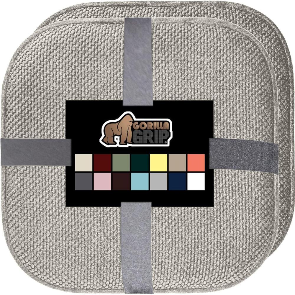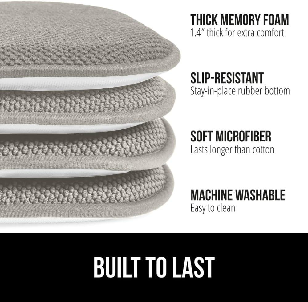 GORILLA GRIP Slip Resistant Chair Cushions, No Ties Required, Memory Foam Pads for Dining Room, Kitchen Table, Office, Rocking Chairs, Plush Seat Cover Cushion Pad, Home Decor, Set of 4, 16×16, Gray(Grey)