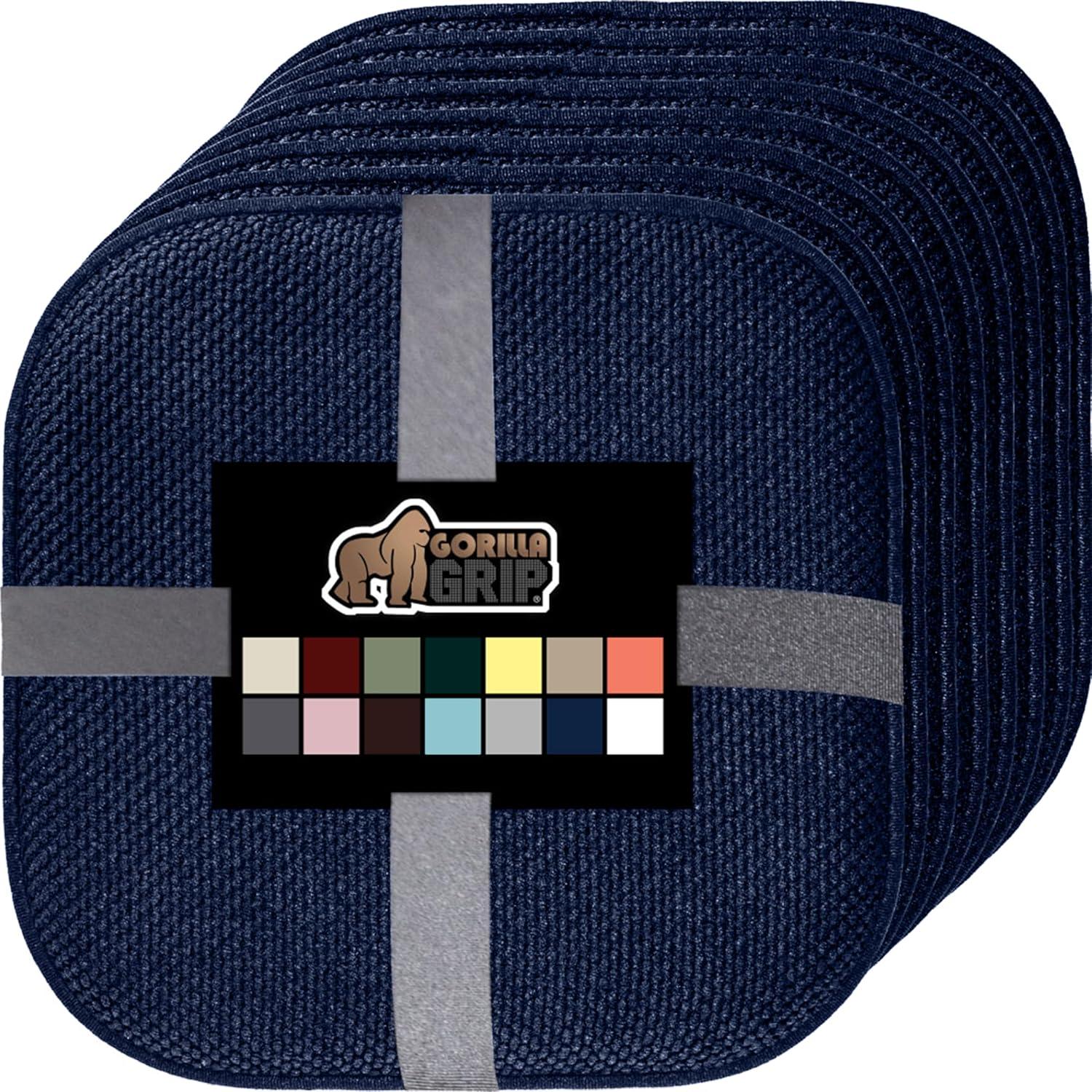 GORILLA GRIP Slip Resistant Chair Cushions, No Ties Required, Memory Foam Pads for Dining Room, Kitchen Table, Office, Rocking Chairs, Plush Seat Cover Cushion Pad, Home Decor, Set of 4, 16x16, Gray(Navy)