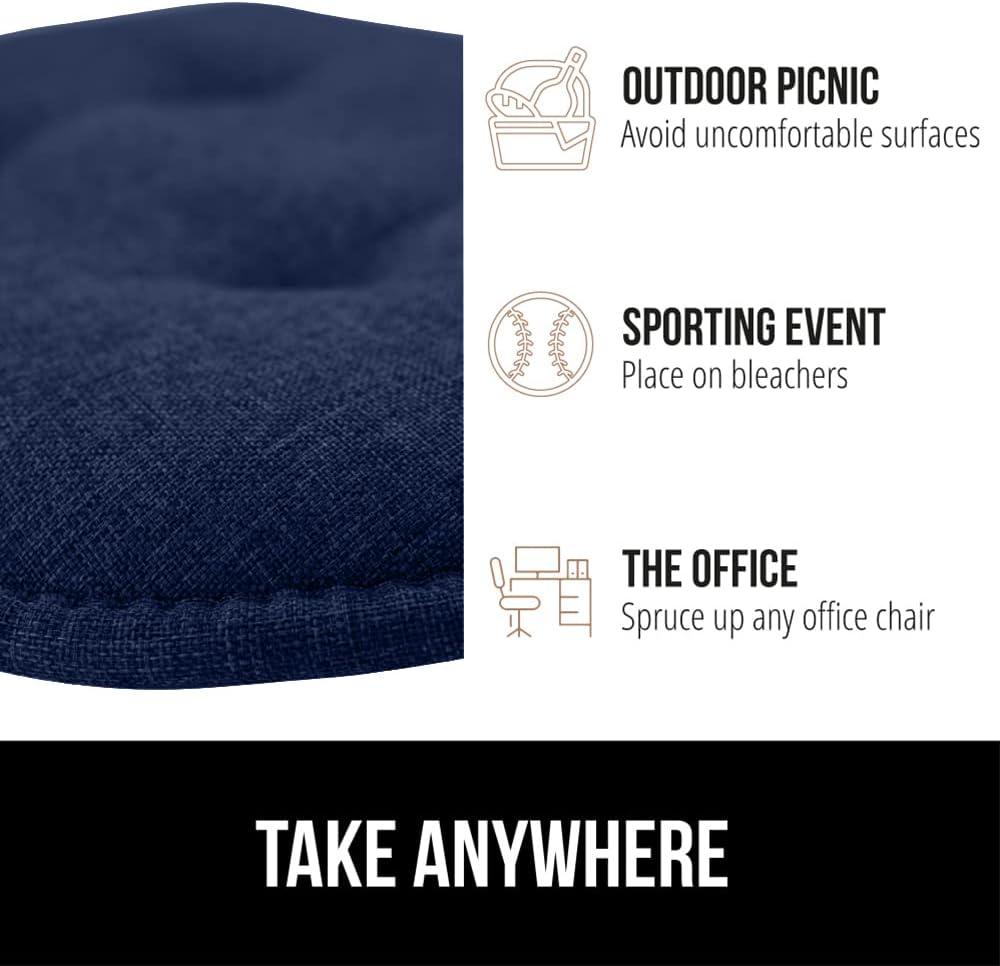 DURABLE ENOUGH FOR ANYWHERE: thick, tear resistant material and piped edging make the chair pad a durable option to take on the go; bring to sporting events, concerts, or picnics