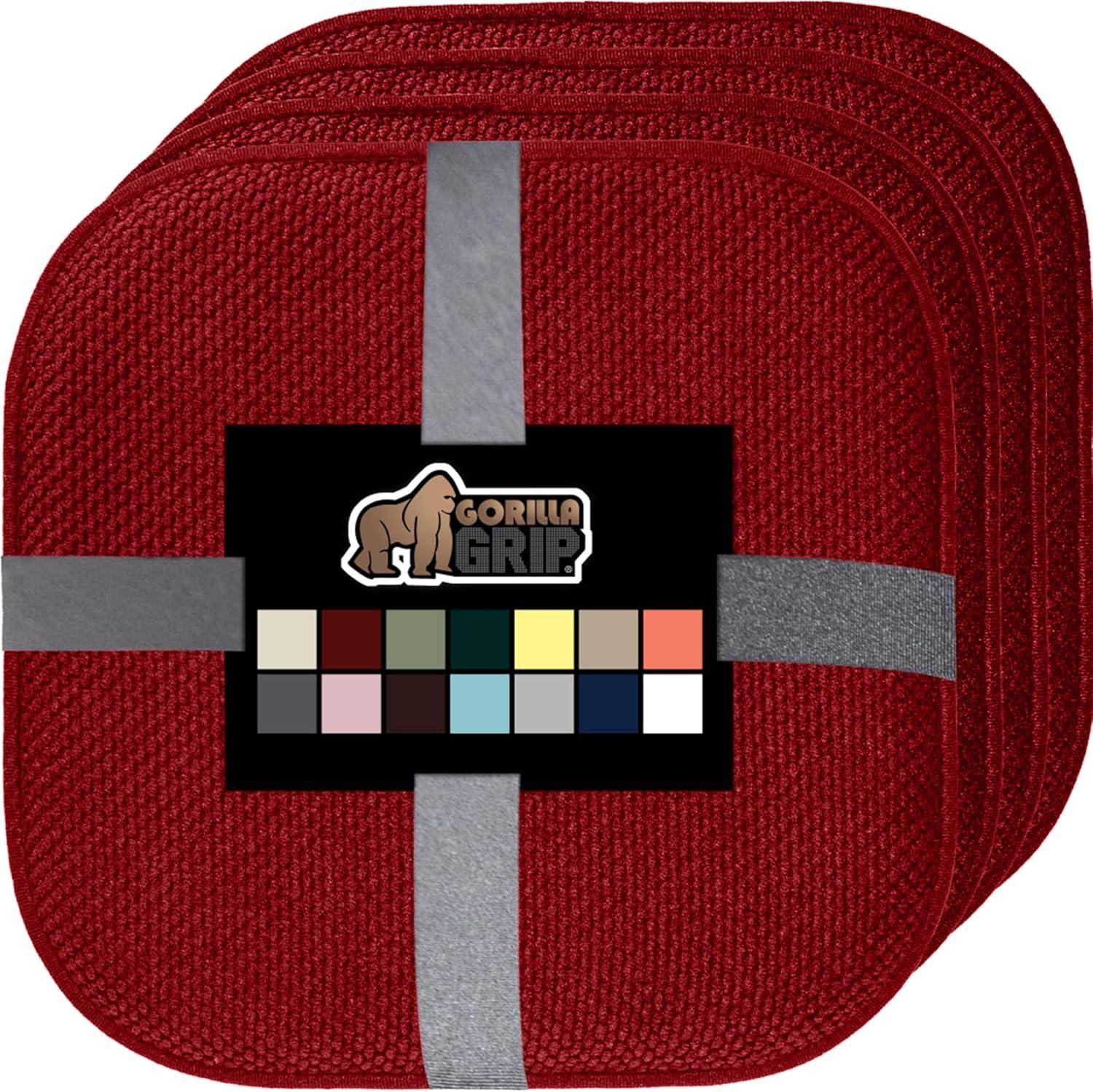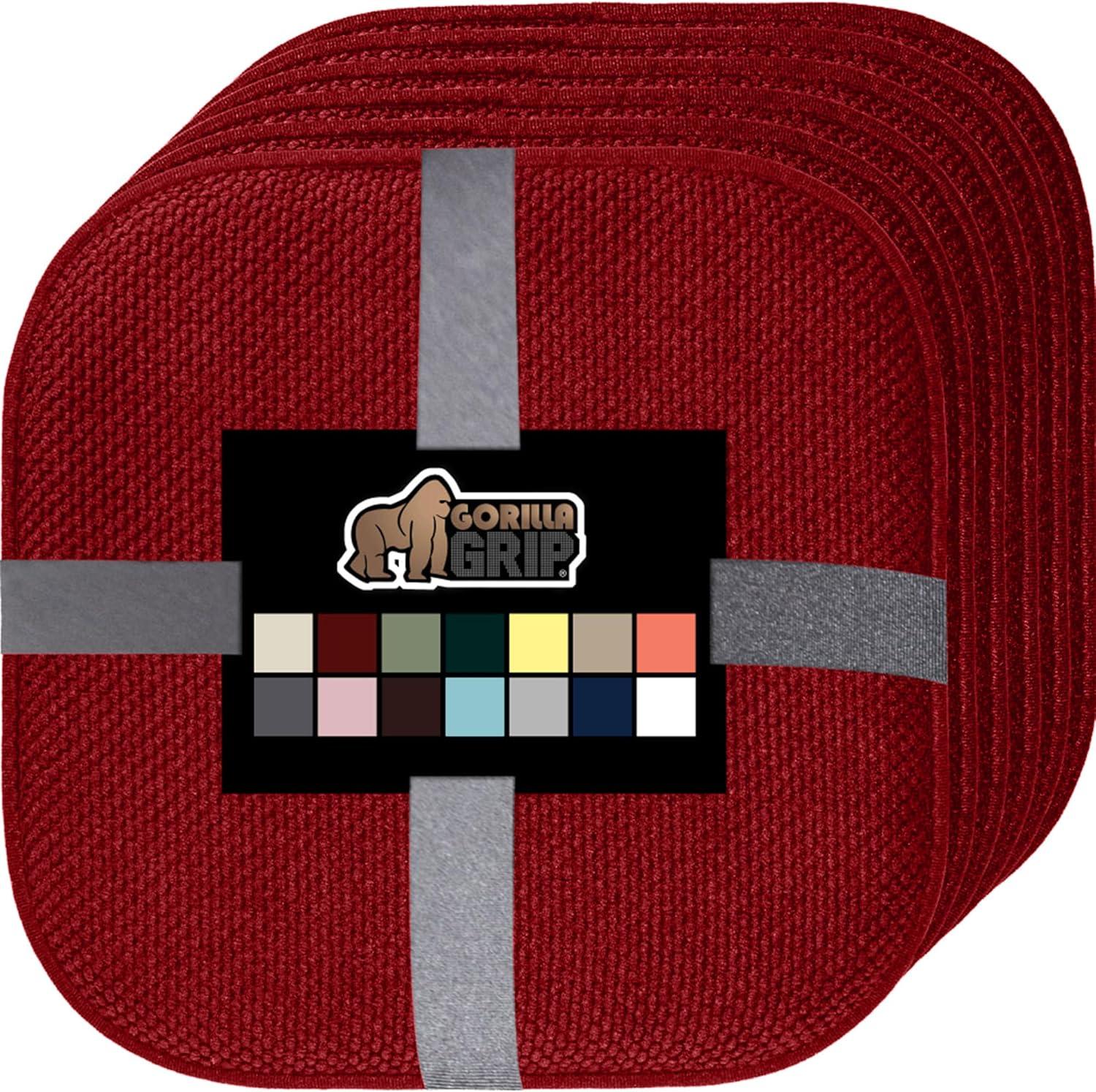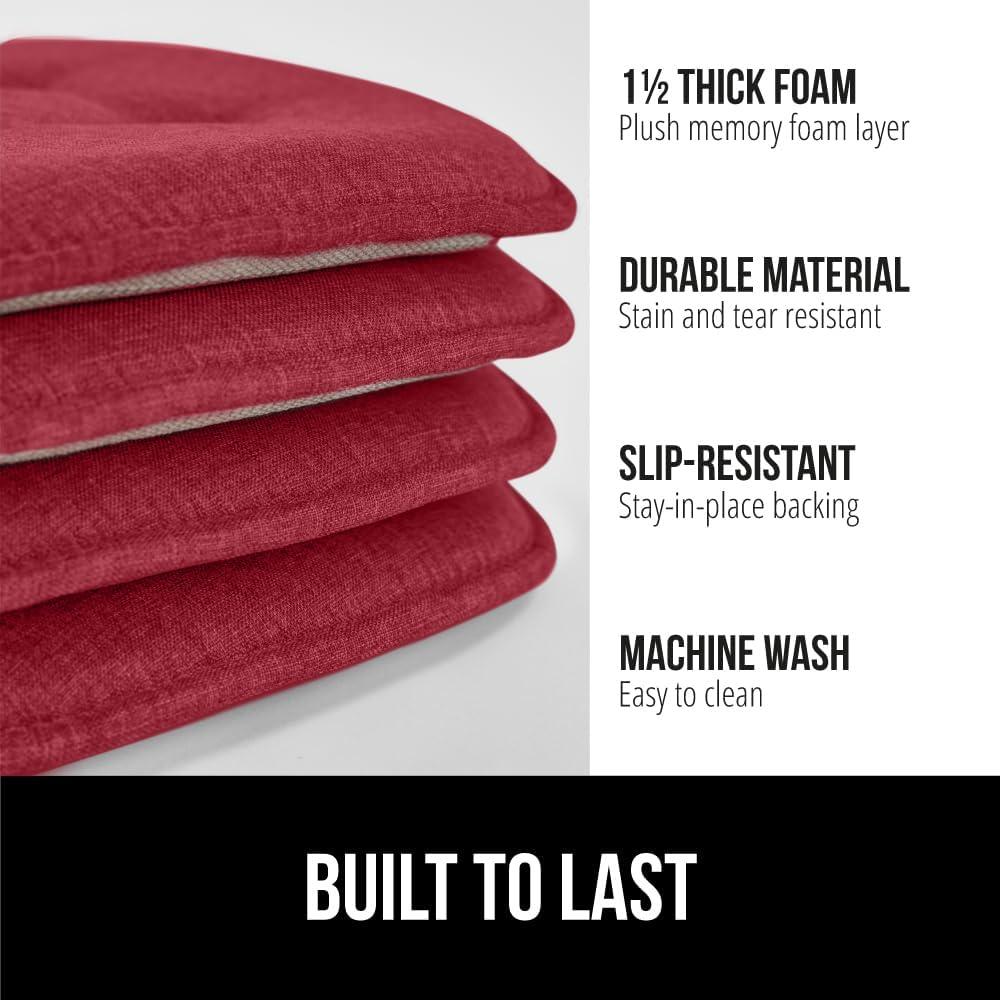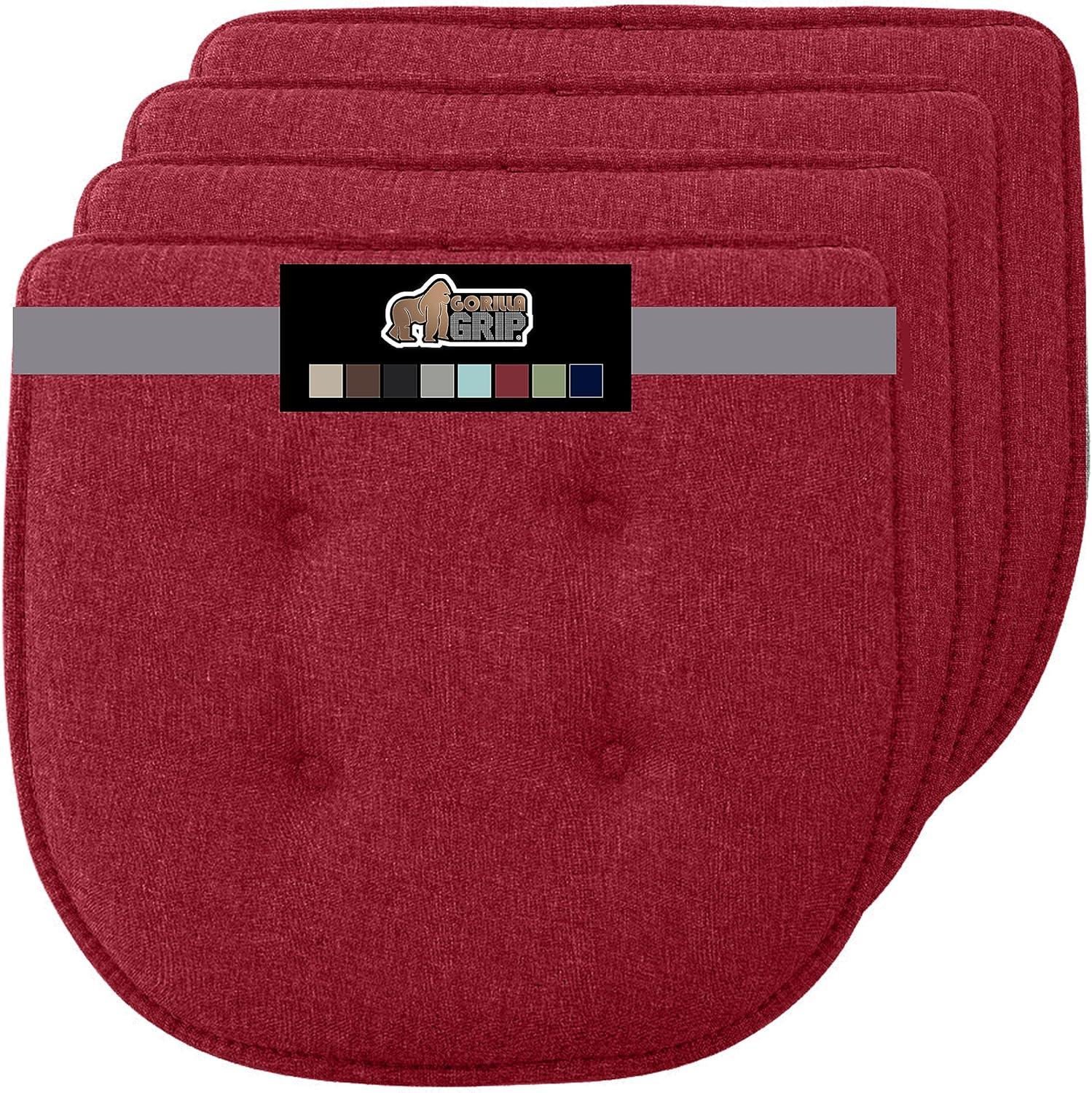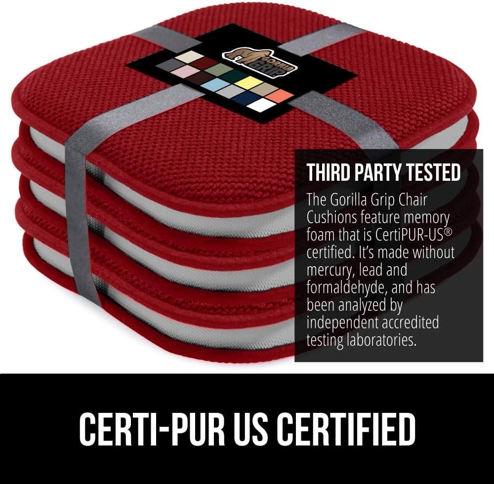 GORILLA GRIP Slip Resistant Chair Cushions, No Ties Required, Memory Foam Pads for Dining Room, Kitchen Table, Office, Rocking Chairs, Plush Seat Cover Cushion Pad, Home Decor, Set of 4, 16x16, Gray(Red)
