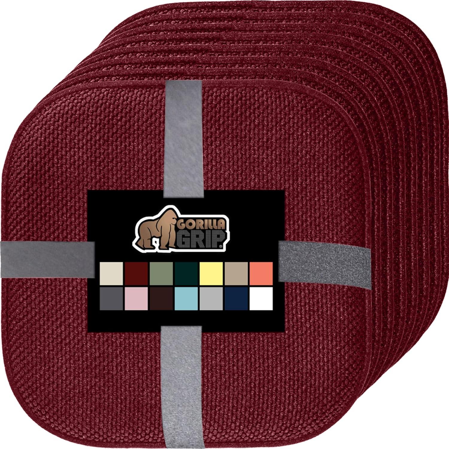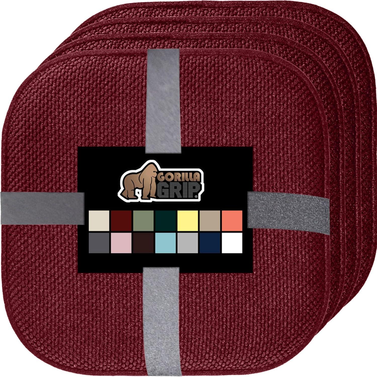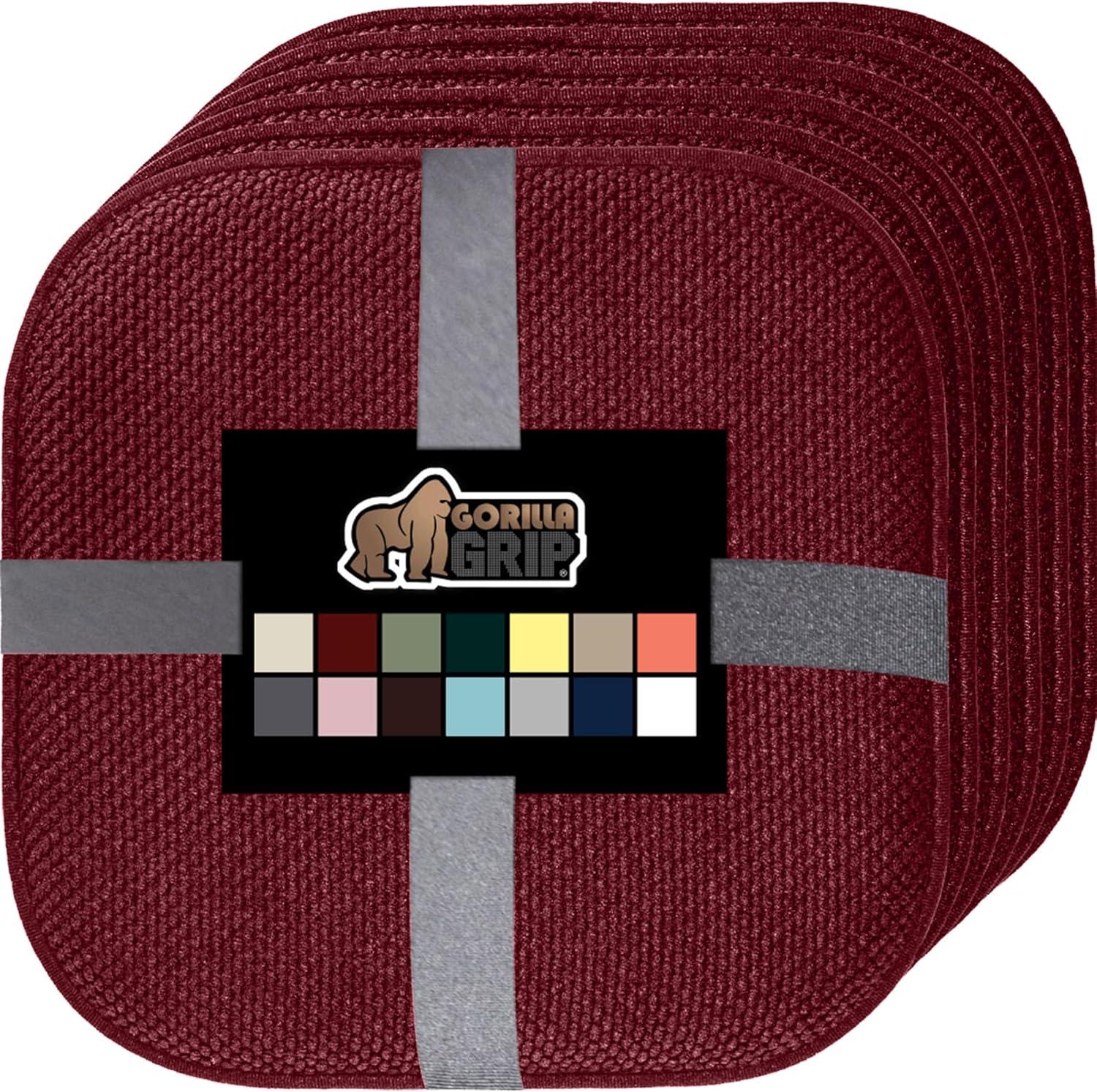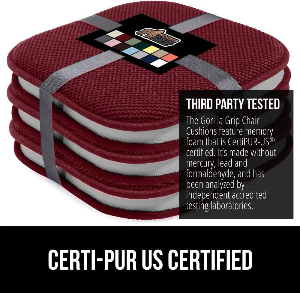 GORILLA GRIP Slip Resistant Chair Cushions, No Ties Required, Memory Foam Pads for Dining Room, Kitchen Table, Office, Rocking Chairs, Plush Seat Cover Cushion Pad, Home Decor, Set of 4, 16x16, Gray(Wine)