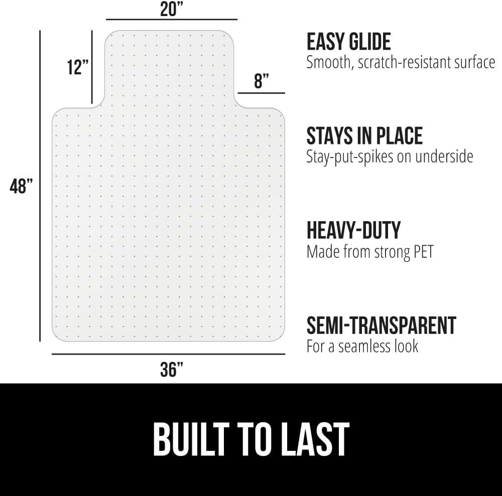 ADDED PROTECTION FOR CARPETS: help protect your rug from snags, marks, and overall wear and tear; since the chair mat is so thick, it adds a double layer of protection to help keep your carpet looking as good as new; works on medium to low pile rugs up to ¾ inches high