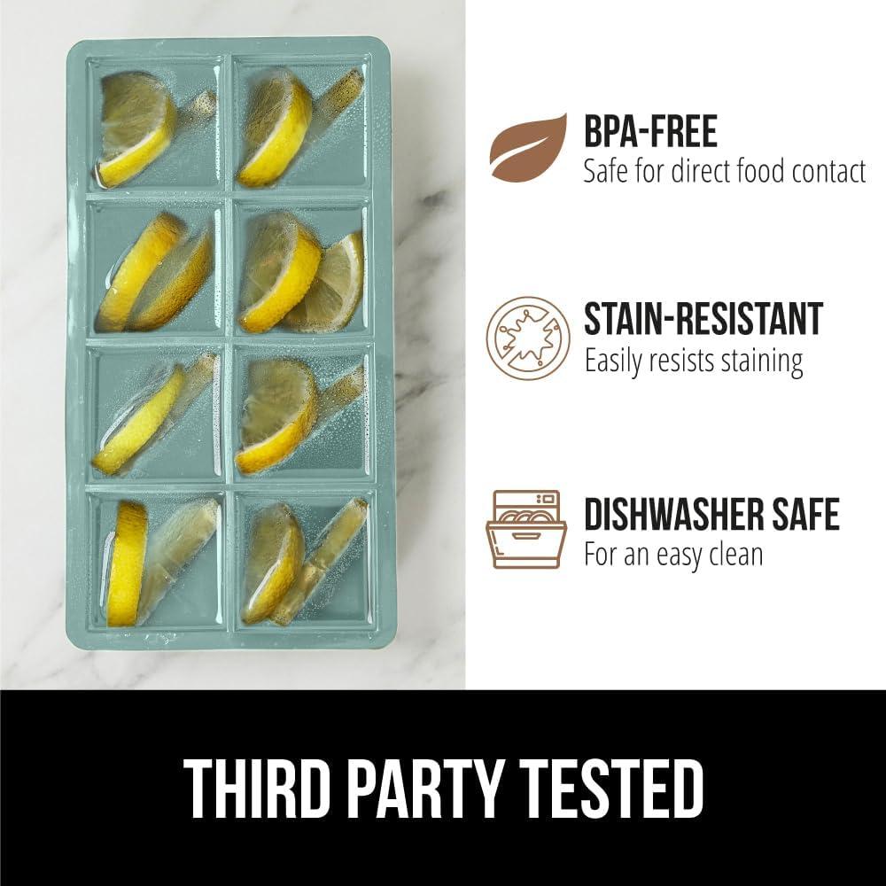 imageGorilla Grip Slow Melting Large Silicone Ice Cube Tray for Freezer Easy to Push 8 Giant Square Cubes Use for Cocktails Iced Coffee Water Bottle Frozen Puree Kitchen Bar Essentials 1 Pack BlackMint