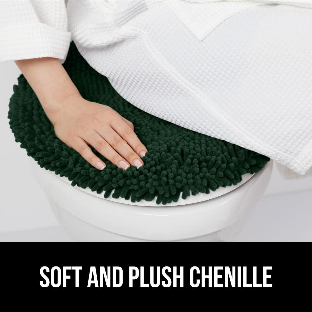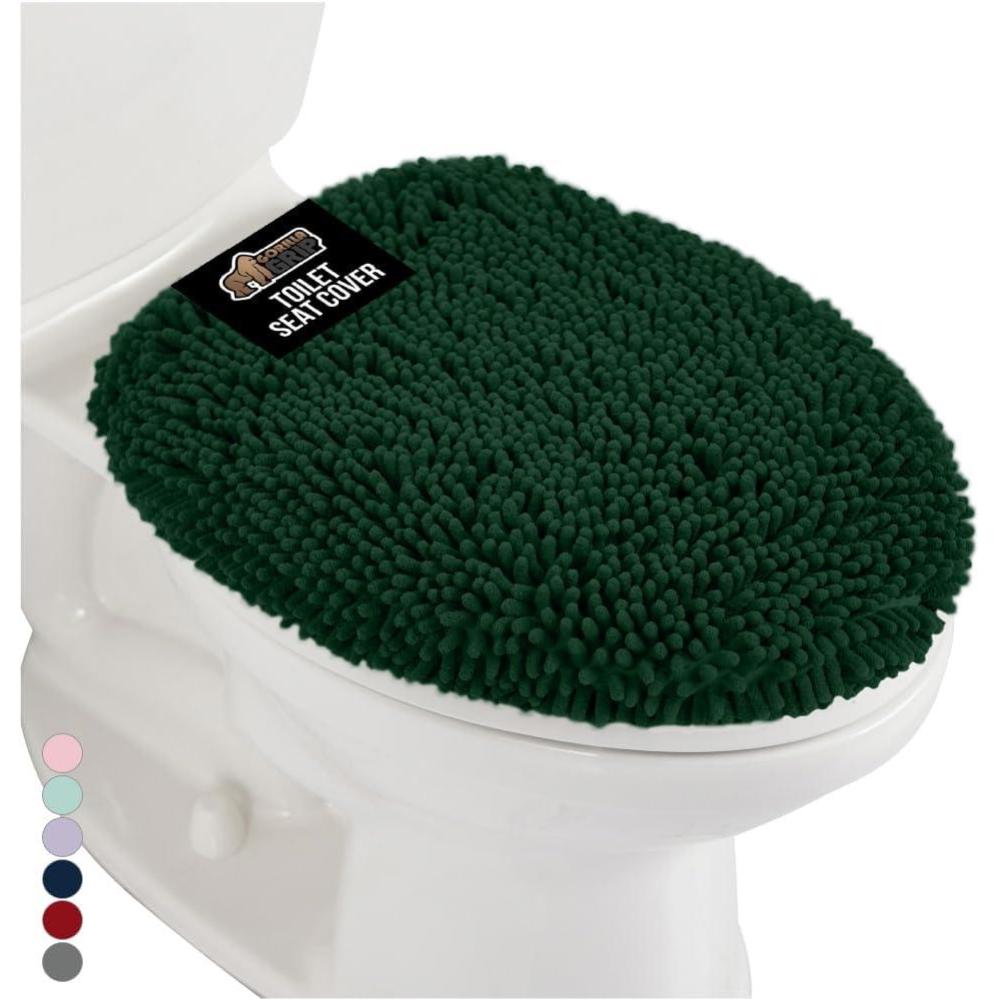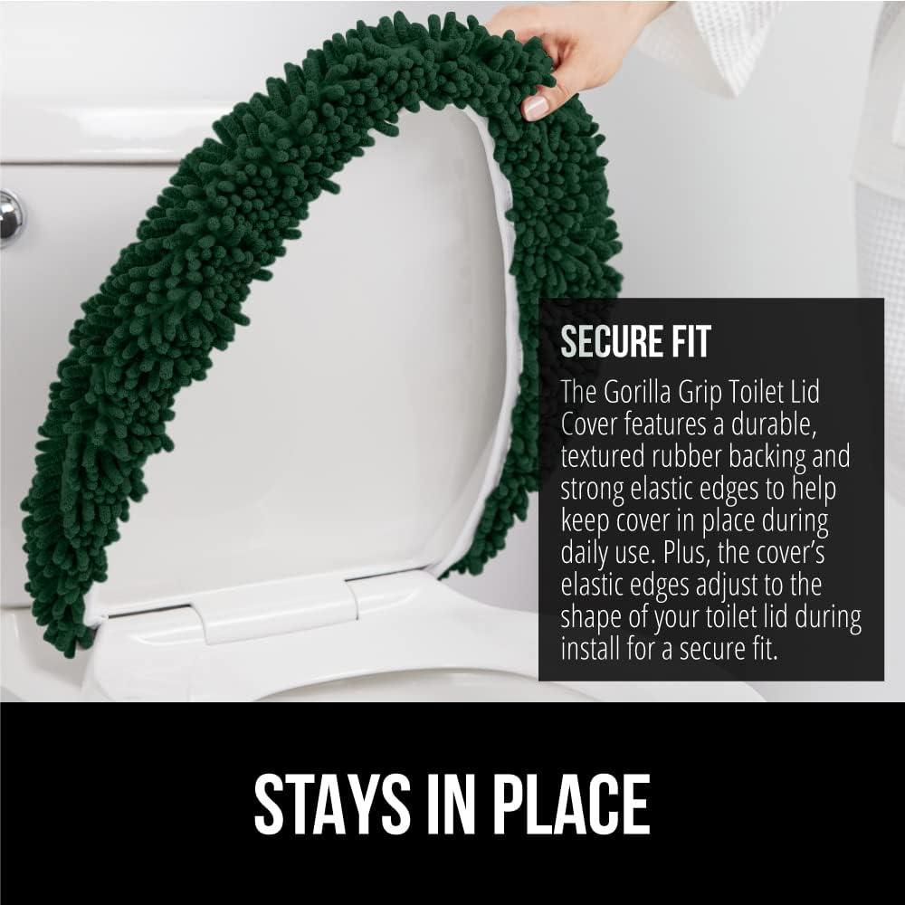 GORILLA GRIP Soft Chenille Bathroom Toilet Lid Cover, Machine Washable Seat Covers, 19.5×18.5, Stays in Place Rubber Backing, Fits Most Round, Elongated and Oblong Lids, Accessories Decor, Gray(Hunter Green)