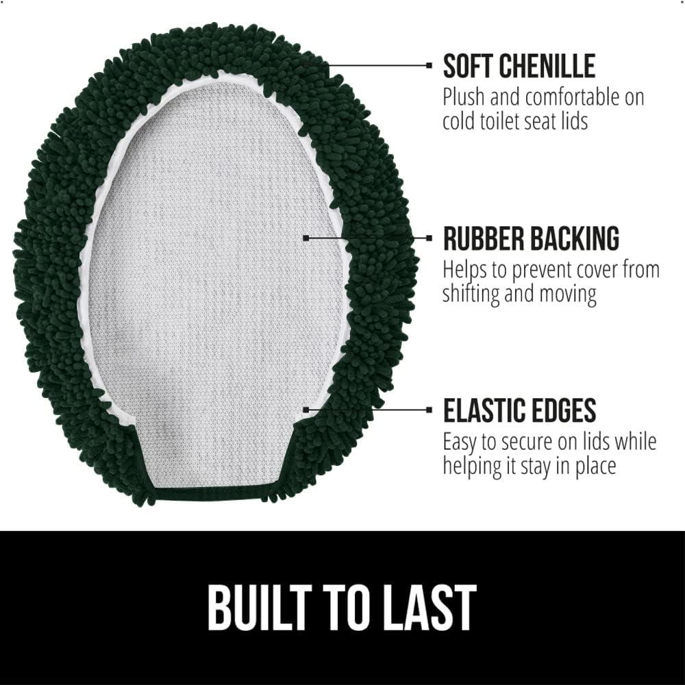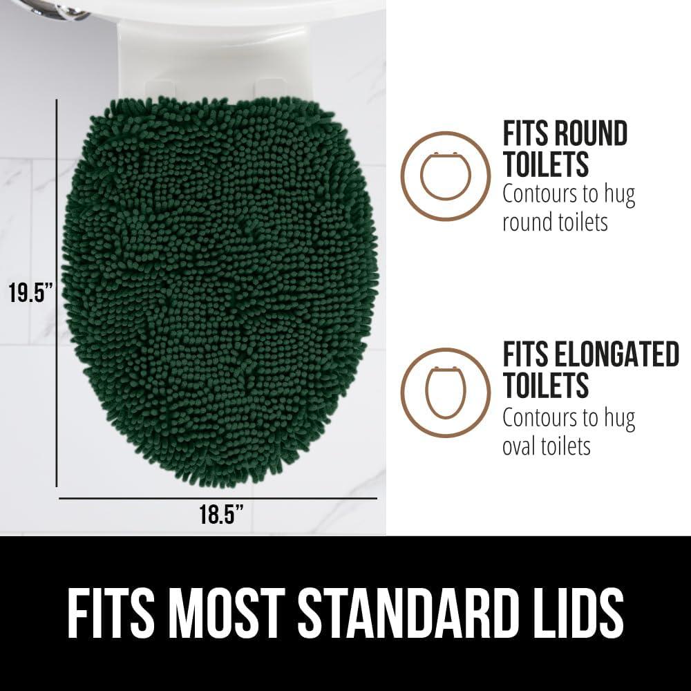 GORILLA GRIP Soft Chenille Bathroom Toilet Lid Cover, Machine Washable Seat Covers, 19.5x18.5, Stays in Place Rubber Backing, Fits Most Round, Elongated and Oblong Lids, Accessories Decor, Gray(Hunter Green)