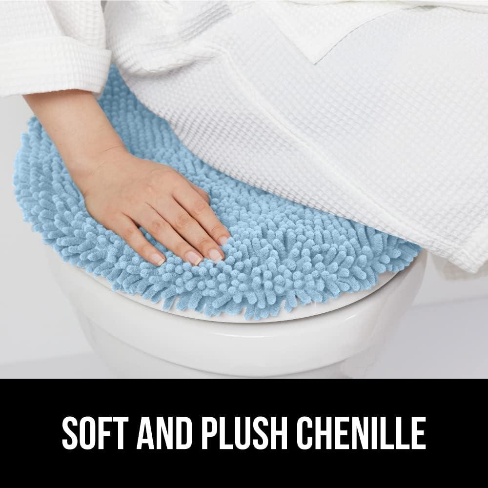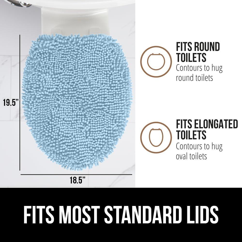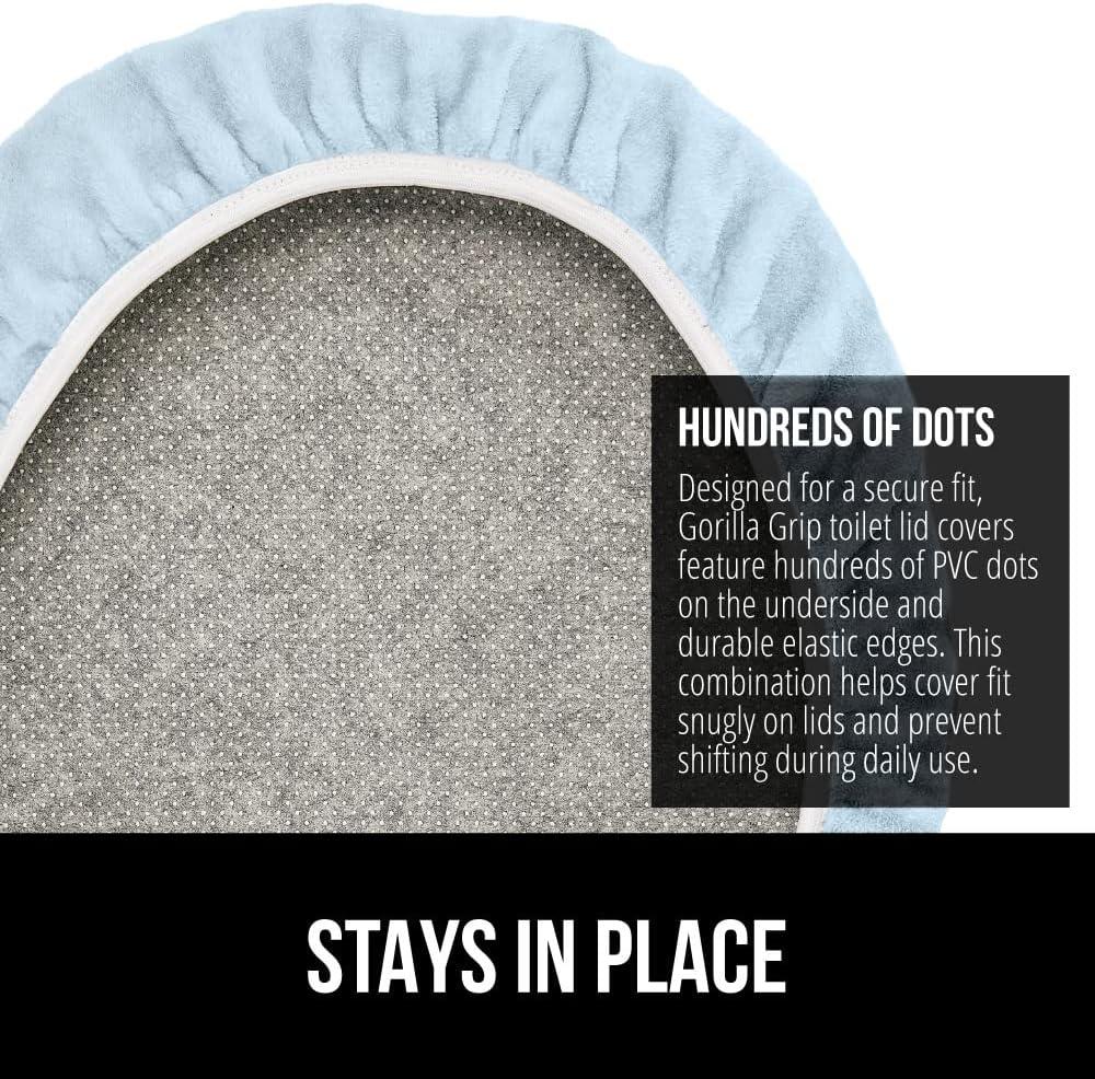 GORILLA GRIP Soft Chenille Bathroom Toilet Lid Cover, Machine Washable Seat Covers, 19.5x18.5, Stays in Place Rubber Backing, Fits Most Round, Elongated and Oblong Lids, Accessories Decor, Gray(Light Blue)