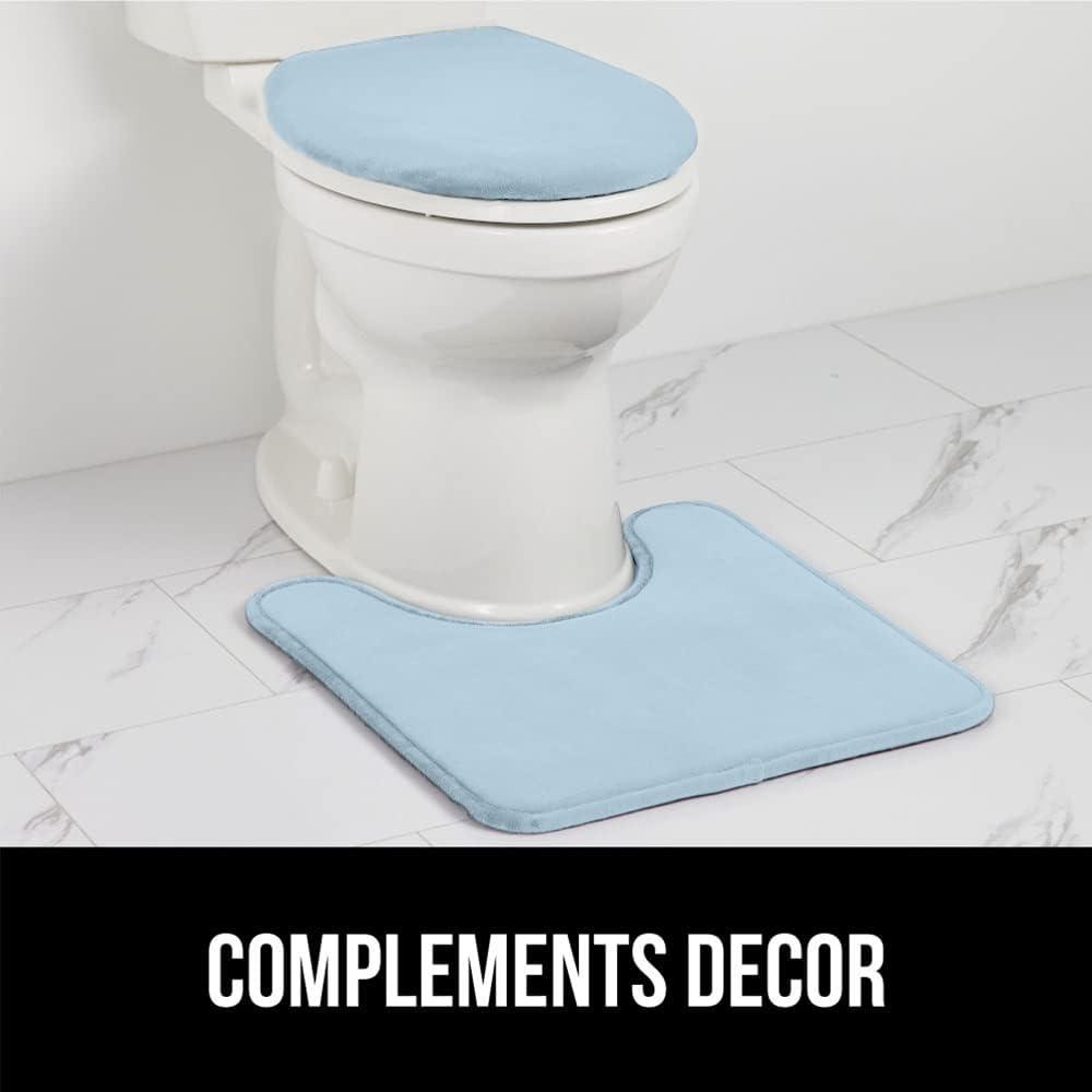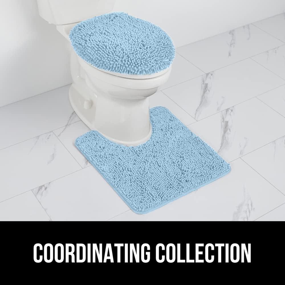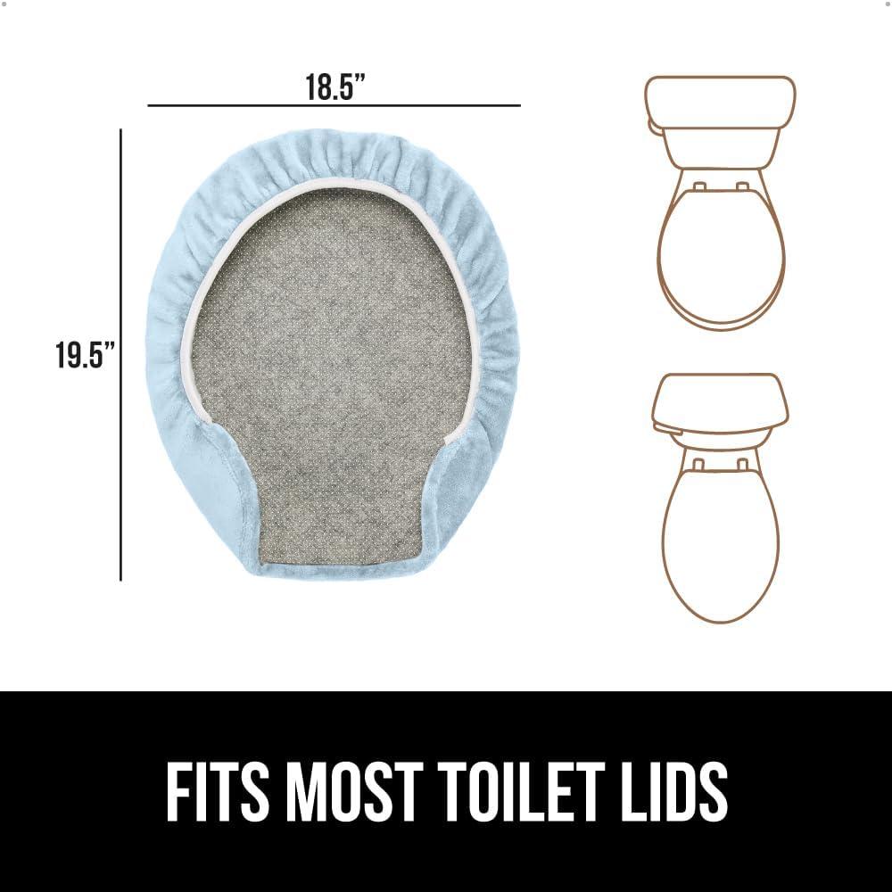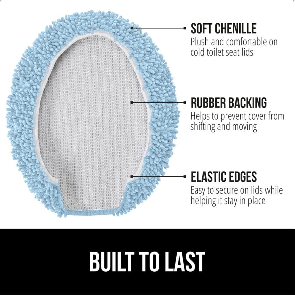 GORILLA GRIP Soft Chenille Bathroom Toilet Lid Cover, Machine Washable Seat Covers, 19.5x18.5, Stays in Place Rubber Backing, Fits Most Round, Elongated and Oblong Lids, Accessories Decor, Gray(Light Blue)
