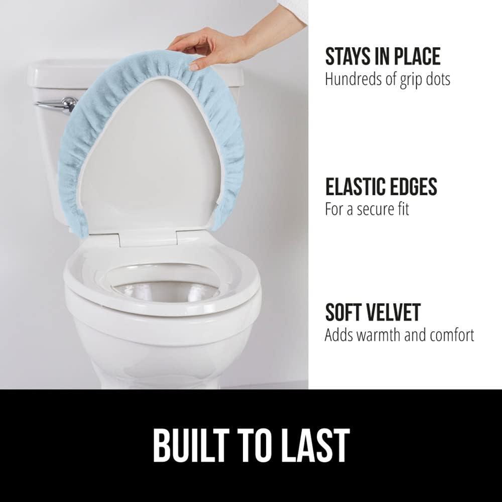 SOFT AND COMFORTABLE CHENILLE: plush chenille topside is ultra soft and comfortable to sit on; premium fabric adds an extra layer of comfort while helping to protect your toilet lid from scratches and damage