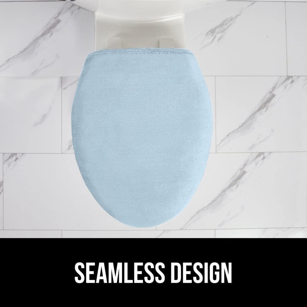 GORILLA GRIP Soft Chenille Bathroom Toilet Lid Cover, Machine Washable Seat Covers, 19.5×18.5, Stays in Place Rubber Backing, Fits Most Round, Elongated and Oblong Lids, Accessories Decor, Gray(Light Blue)