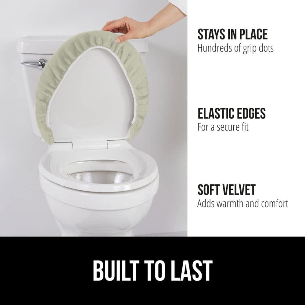 SOFT AND COMFORTABLE CHENILLE: plush chenille topside is ultra soft and comfortable to sit on; premium fabric adds an extra layer of comfort while helping to protect your toilet lid from scratches and damage