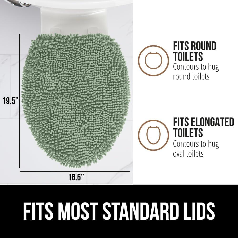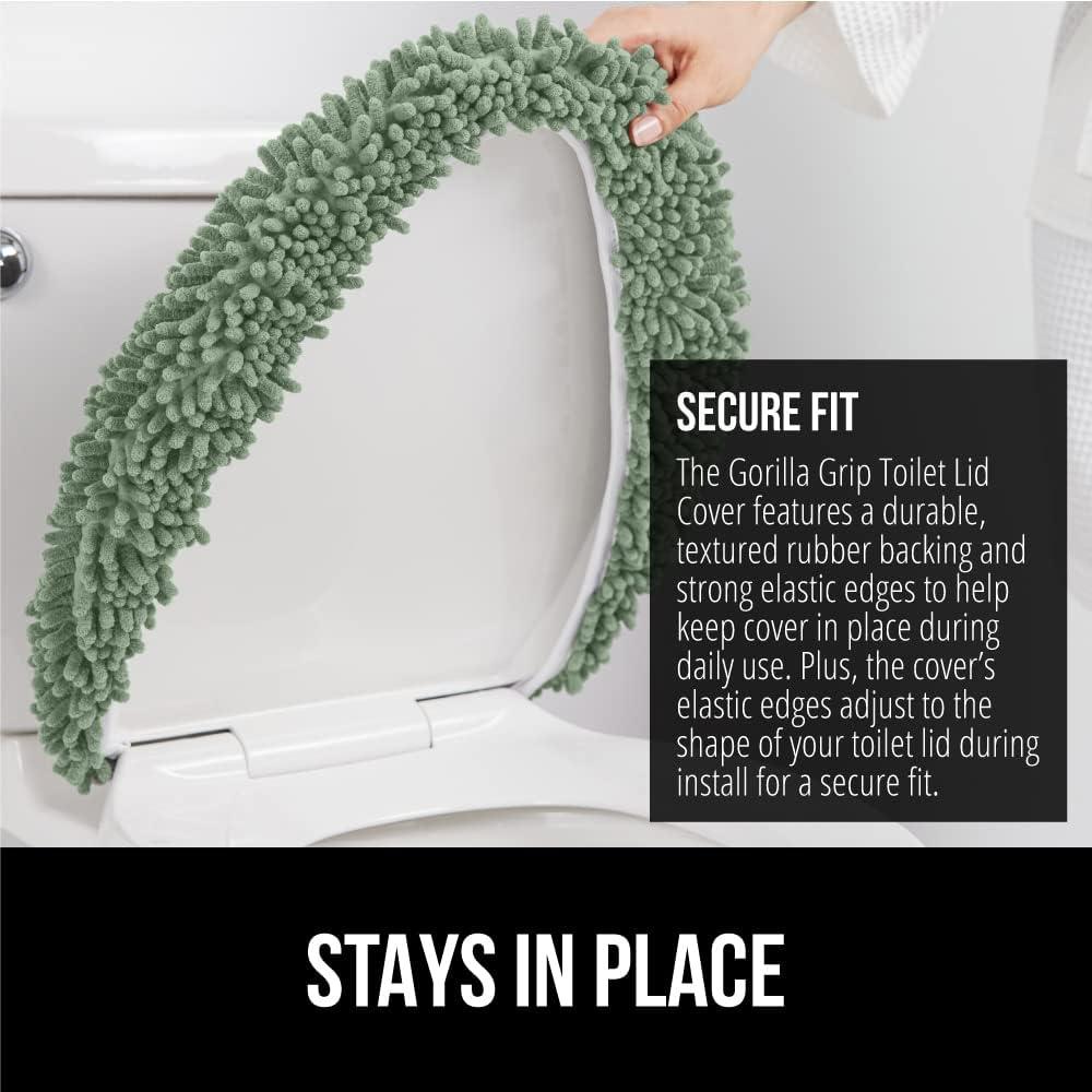 GORILLA GRIP Soft Chenille Bathroom Toilet Lid Cover, Machine Washable Seat Covers, 19.5x18.5, Stays in Place Rubber Backing, Fits Most Round, Elongated and Oblong Lids, Accessories Decor, Gray(Sage)