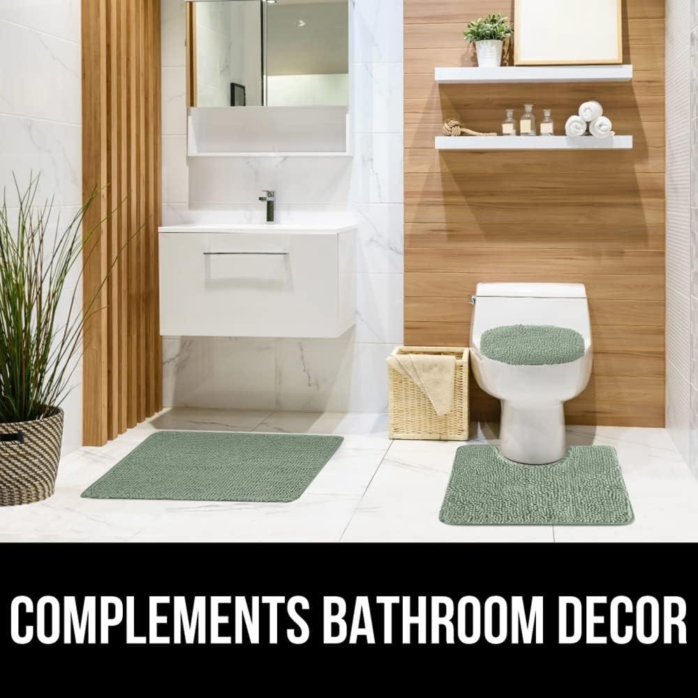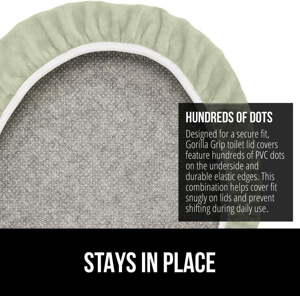GORILLA GRIP Soft Chenille Bathroom Toilet Lid Cover, Machine Washable Seat Covers, 19.5×18.5, Stays in Place Rubber Backing, Fits Most Round, Elongated and Oblong Lids, Accessories Decor, Gray(Sage)