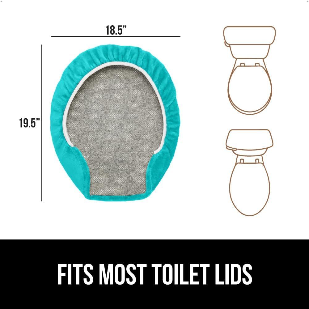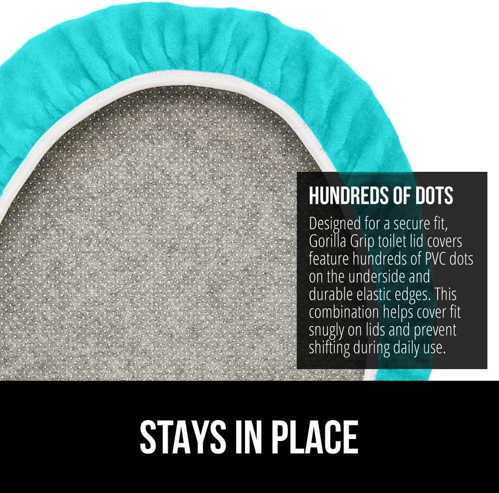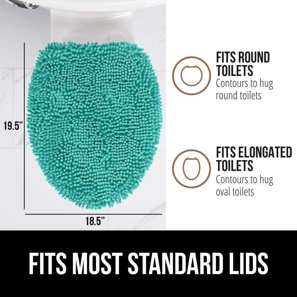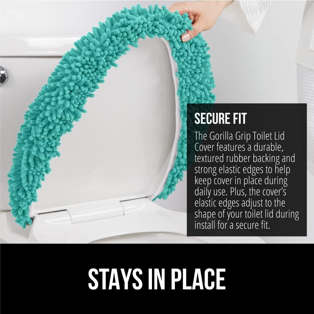 GORILLA GRIP Soft Chenille Bathroom Toilet Lid Cover, Machine Washable Seat Covers, 19.5x18.5, Stays in Place Rubber Backing, Fits Most Round, Elongated and Oblong Lids, Accessories Decor, Gray(Turquoise)