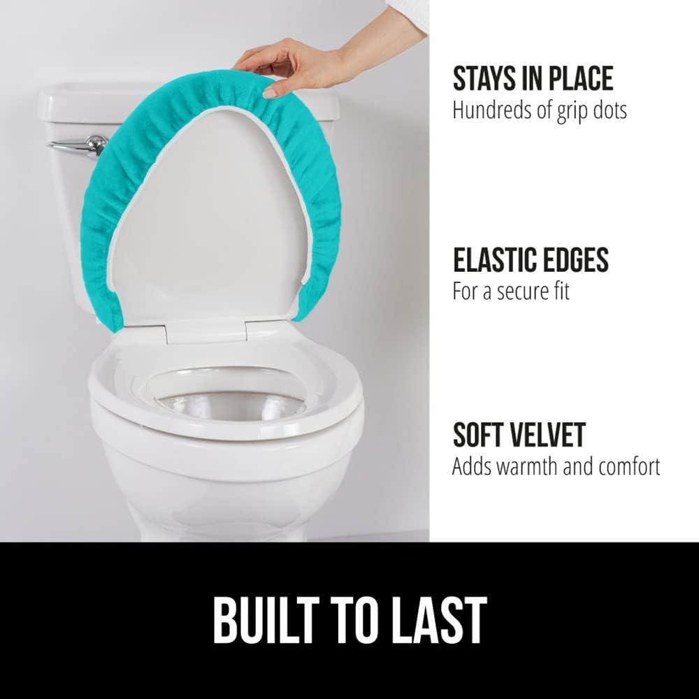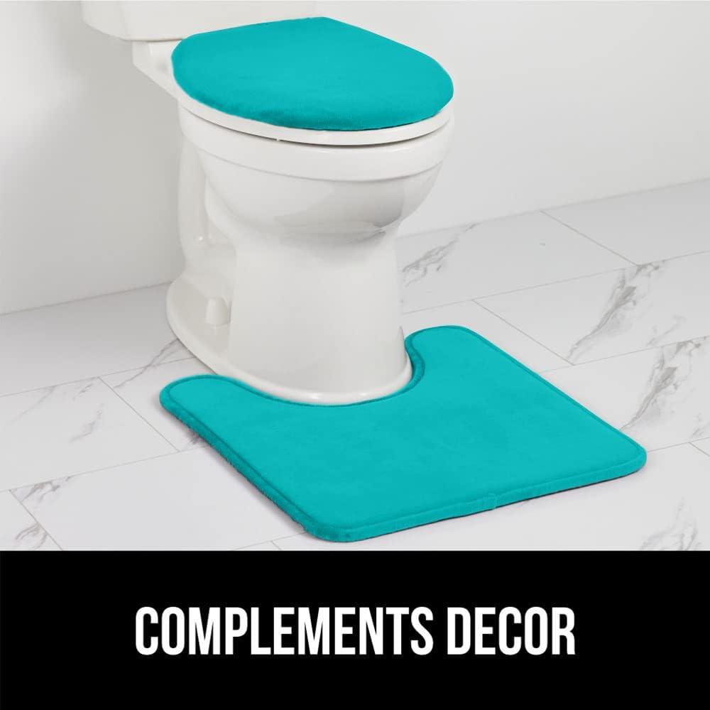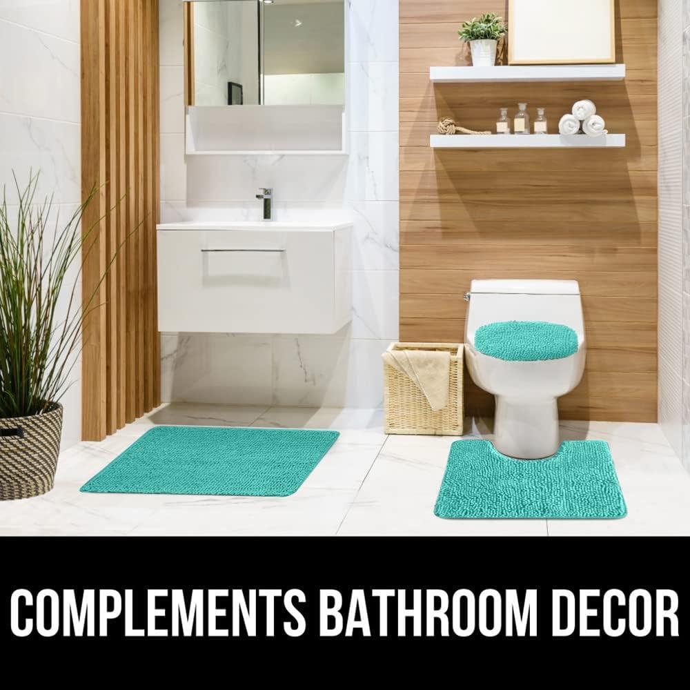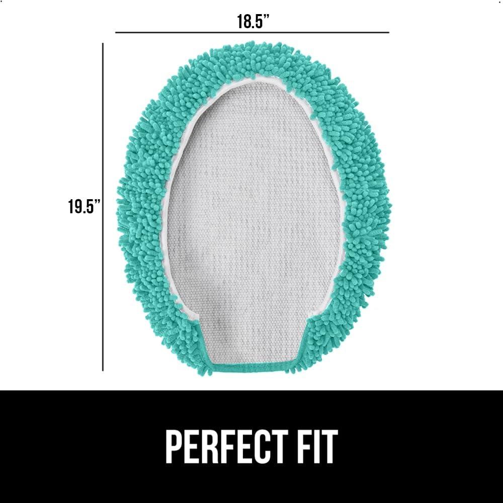 GORILLA GRIP Soft Chenille Bathroom Toilet Lid Cover, Machine Washable Seat Covers, 19.5x18.5, Stays in Place Rubber Backing, Fits Most Round, Elongated and Oblong Lids, Accessories Decor, Gray(Turquoise)