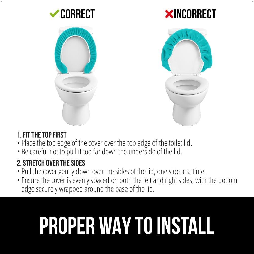 FITS MOST TOILET LIDS: generously sized cover measures 19.5 by 18.5 inches and is designed to fit most round and elongated toilet lids; strong elastic edges help cover to adjust to the shape of your toilet lid for a secure fit; elongated seat lids may require additional effort during installation